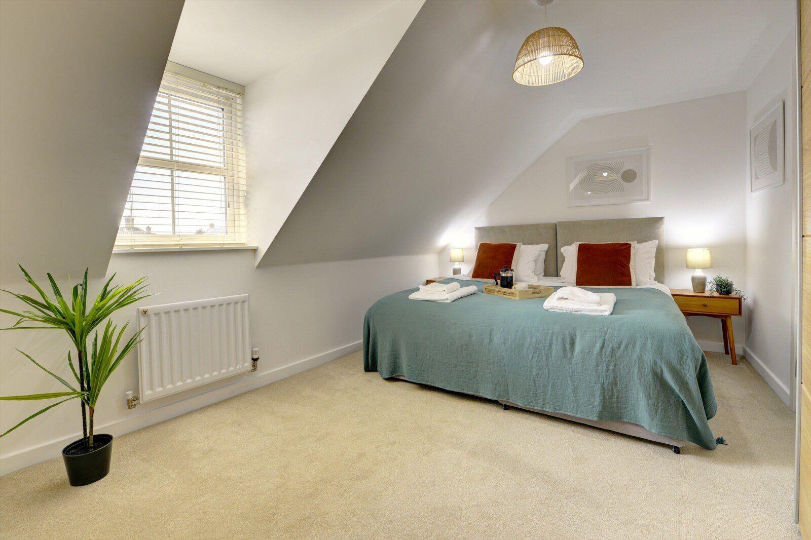 Extensive range of sliding door wardrobes, window to front, doors to en-suite shower room.