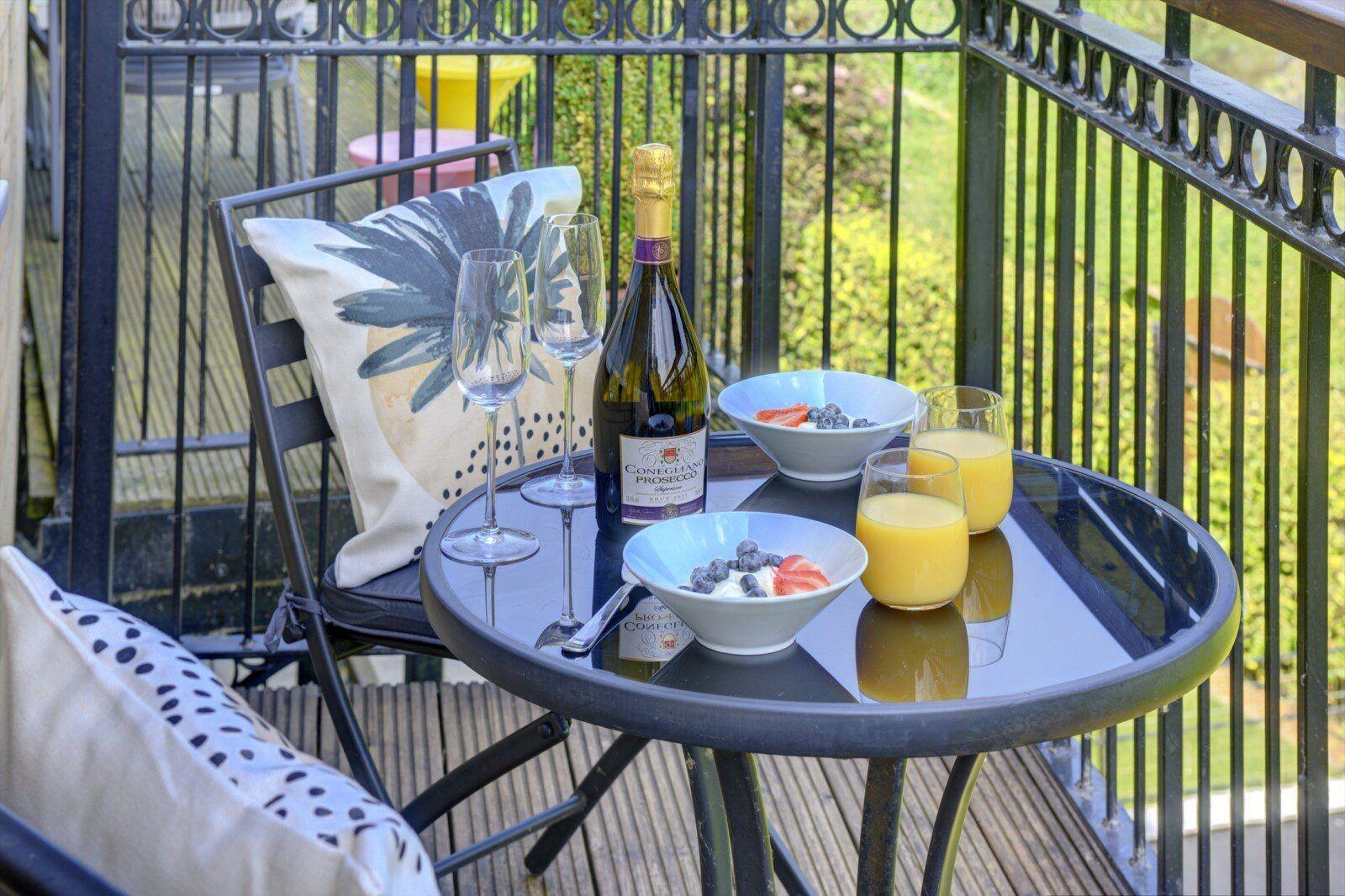 Enclosed rear garden laid to lawn with rear access to public footpath with views over the river and fields beyond.