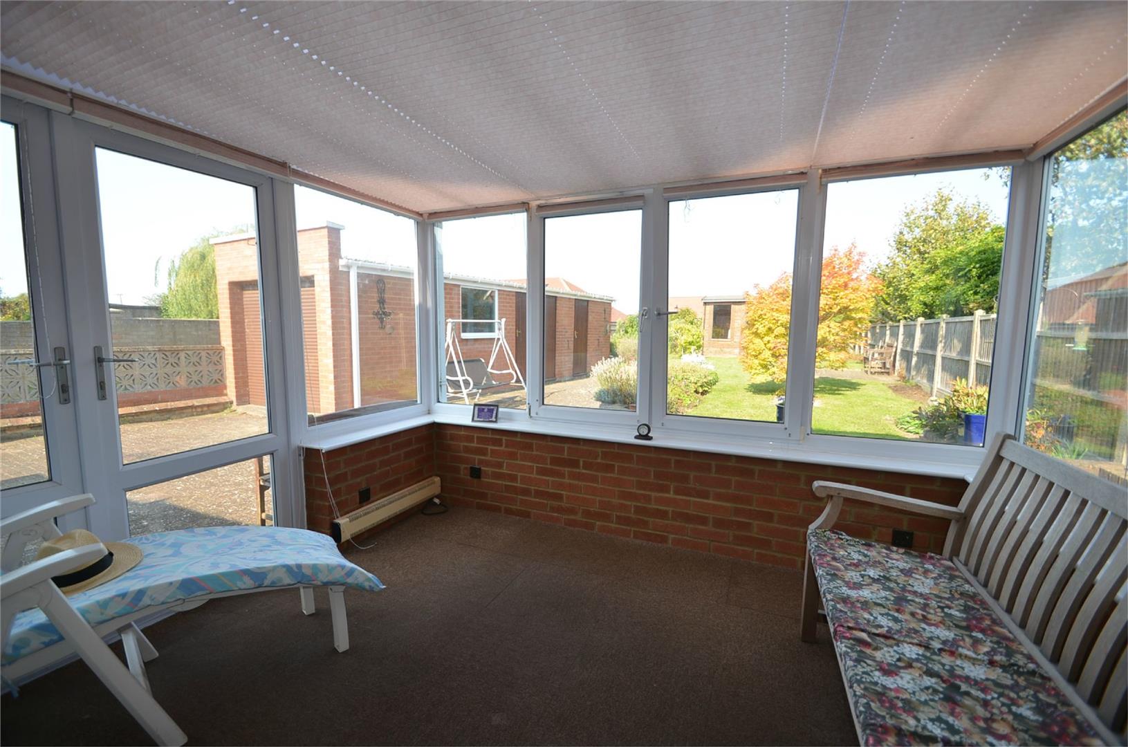 Brick and uPVC construction, two wall mounted electric heaters, fitted blinds to windows and ceiling, French doors to garden.