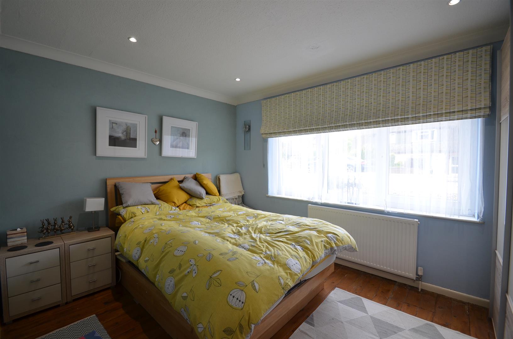 Block paved driveway leading to large graveled area providing ample off road parking, rest laid to lawn retained by brick wall, gated access to rear garden.