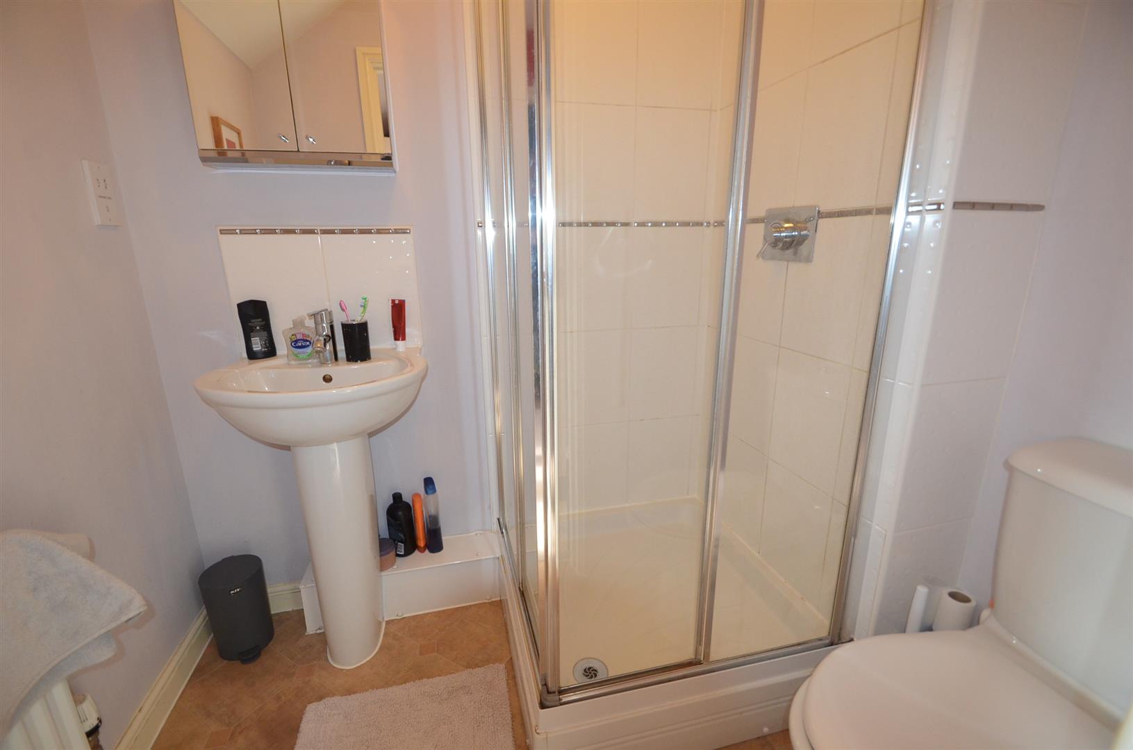 Fully tiled shower cubicle, low level w.c, pedestal wash hand basin, radiator, radiator, extractor fan,