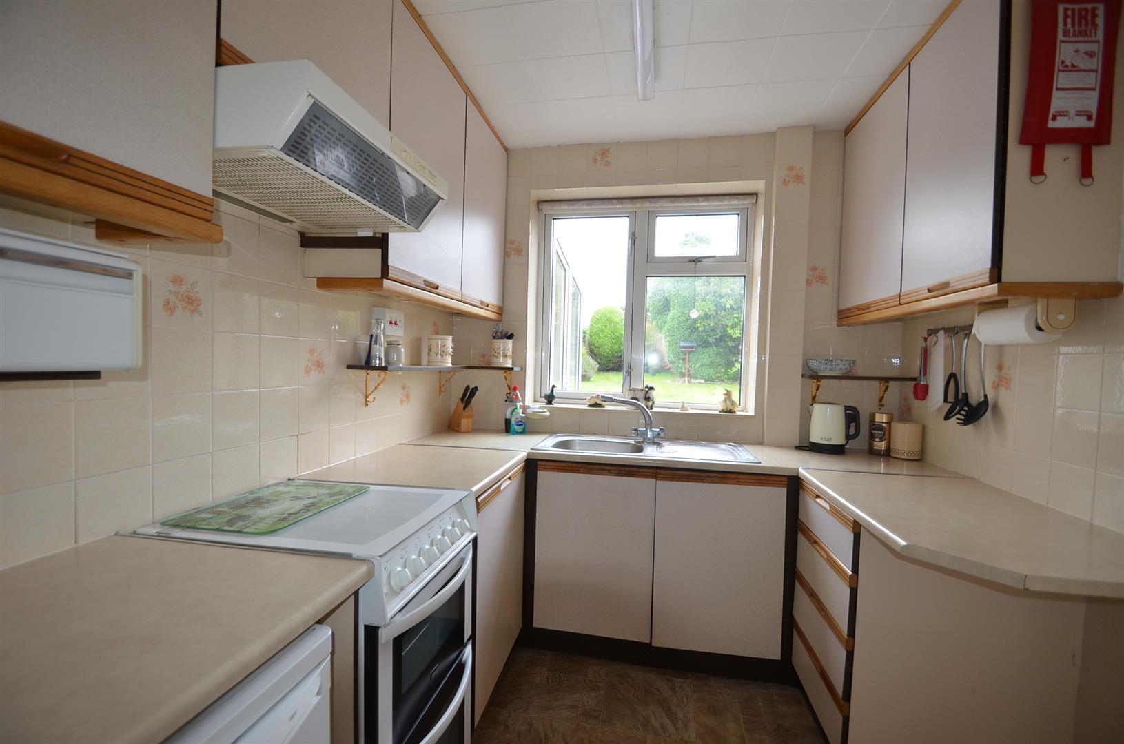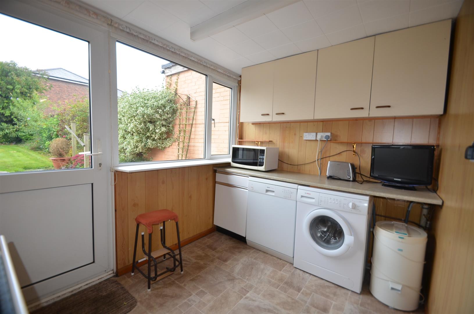 uPVC double glazed window to rear, door to garden, base and wall mounted unit with work surface over, plumbing for dishwasher and washing machine, personal door to garage.