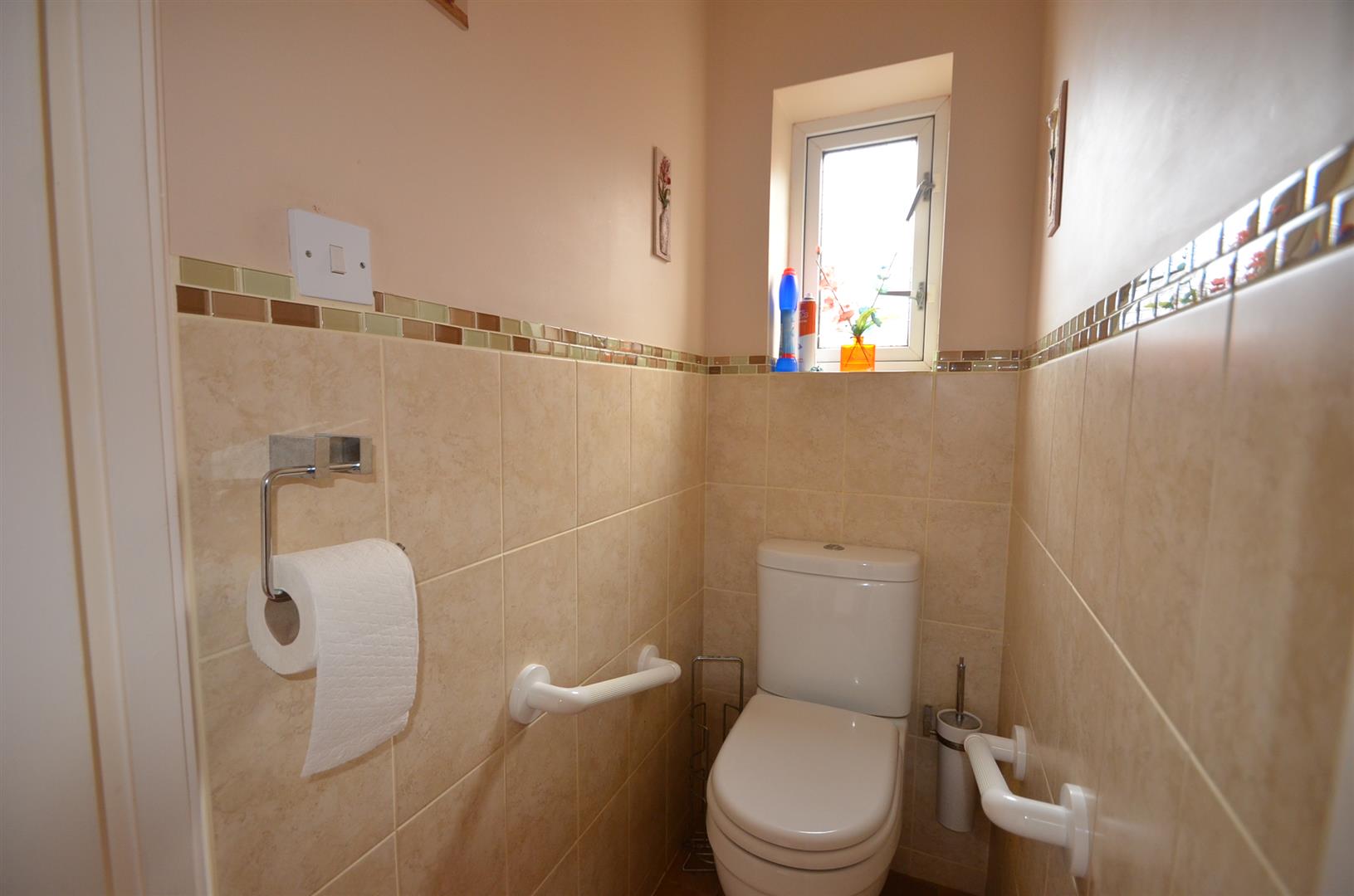 Low level w.c, part tiled walls, uPVC double glazed window to side.