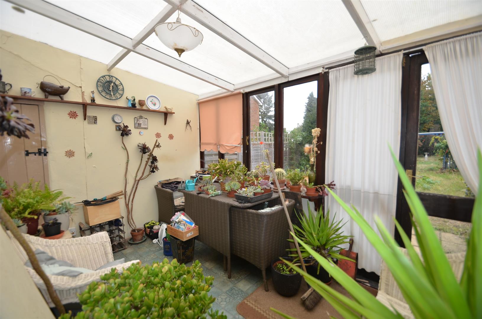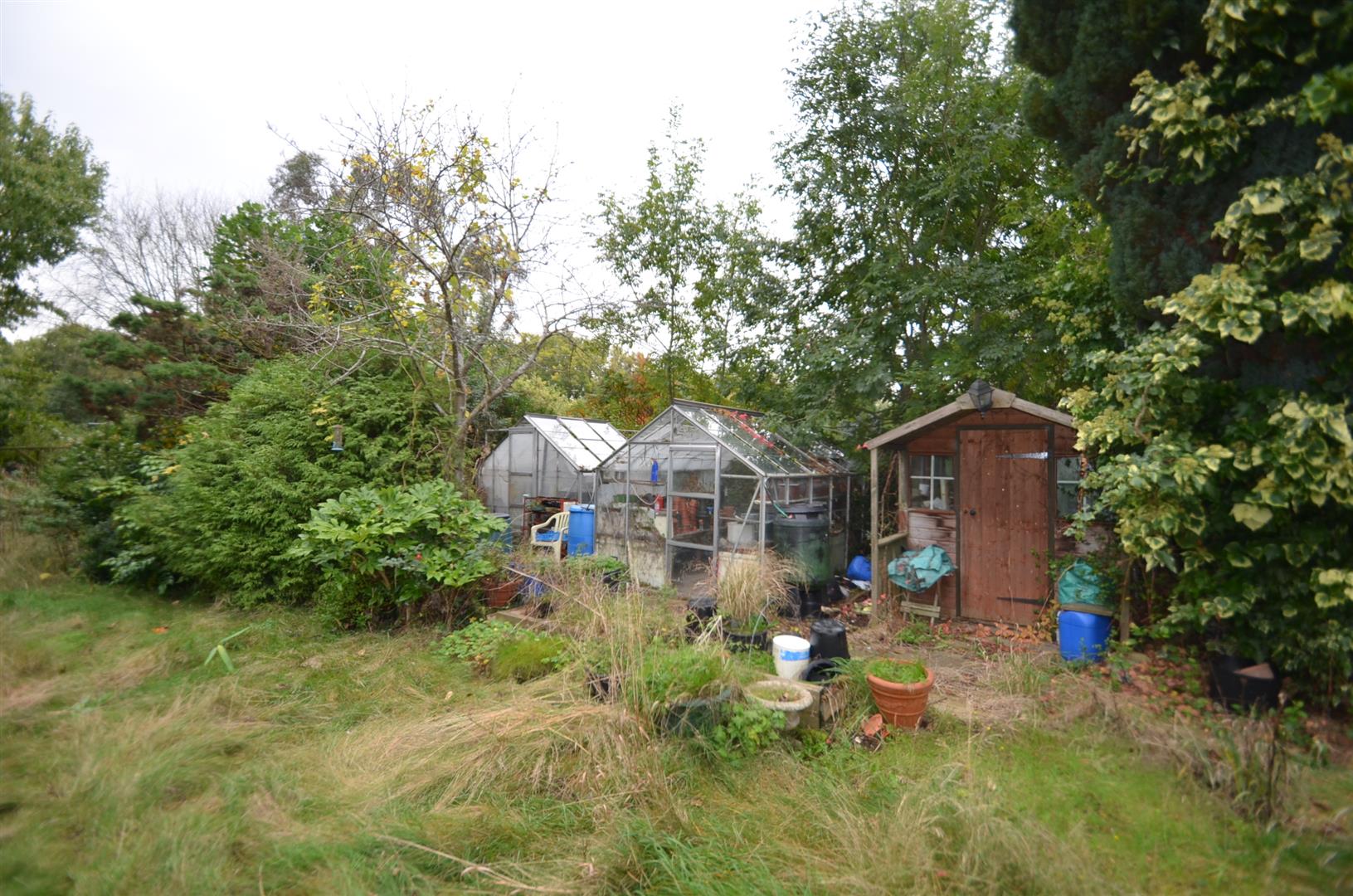 A large garden approximately 200ft long laid mainly to lawn, variety of mature trees and shrubs, two green houses, garden shed.