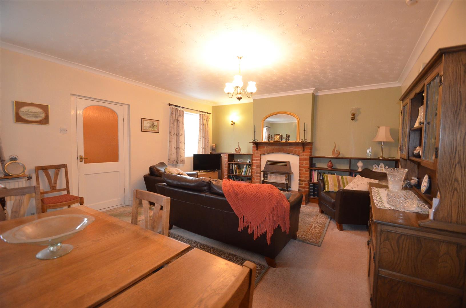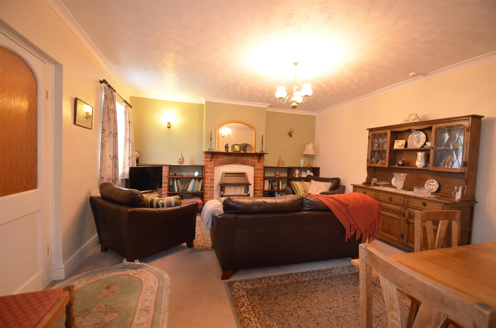 Two windows to front, gas fire with brick surround, alcove with cupboard under stairs, stairs leading to first floor. Steps down to:-