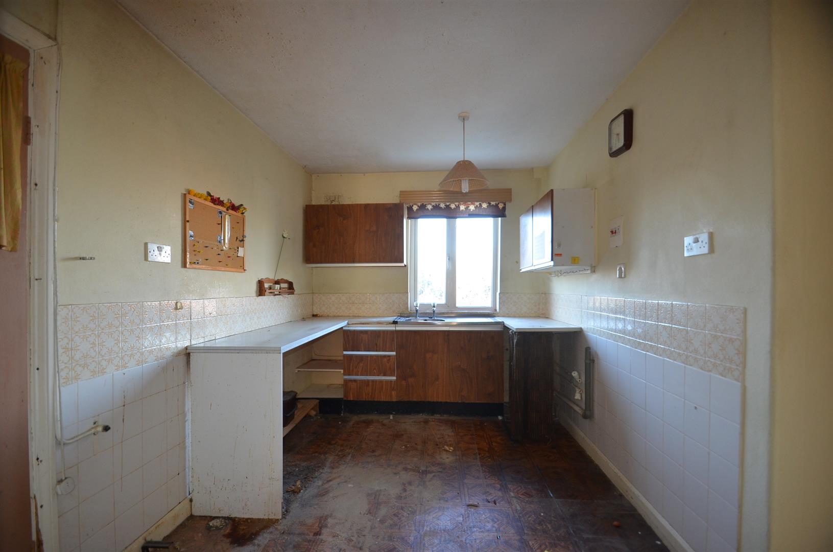 Entrance door, base and wall mounted units with work surface over, stainless steel sink unit, tiled splash back, plumbing for washing machine, window to rear.