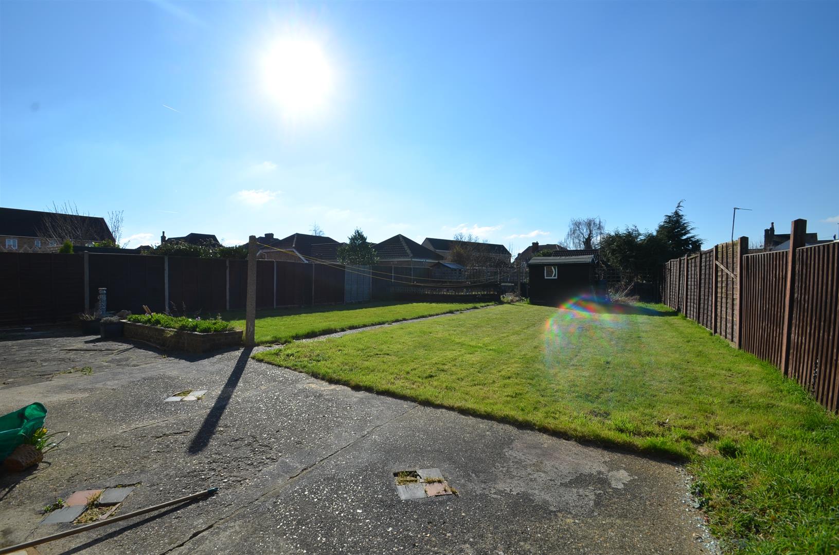 A large, fully enclosed laid mainly to lawn, large paved patio area and concrete hardstanding, garden shed, gated access to front.