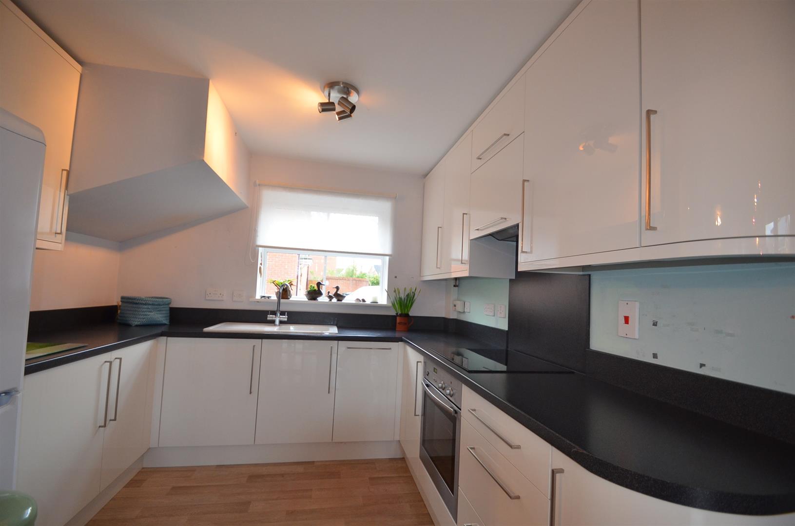Range of base and eye level units with roll top work surfaces, porcelain sink with mixer tap, integrated dishwasher and washing machine, integrated oven with induction hob over, cupboard housing wall mounted gas boiler, uPVC double glazed window to front.