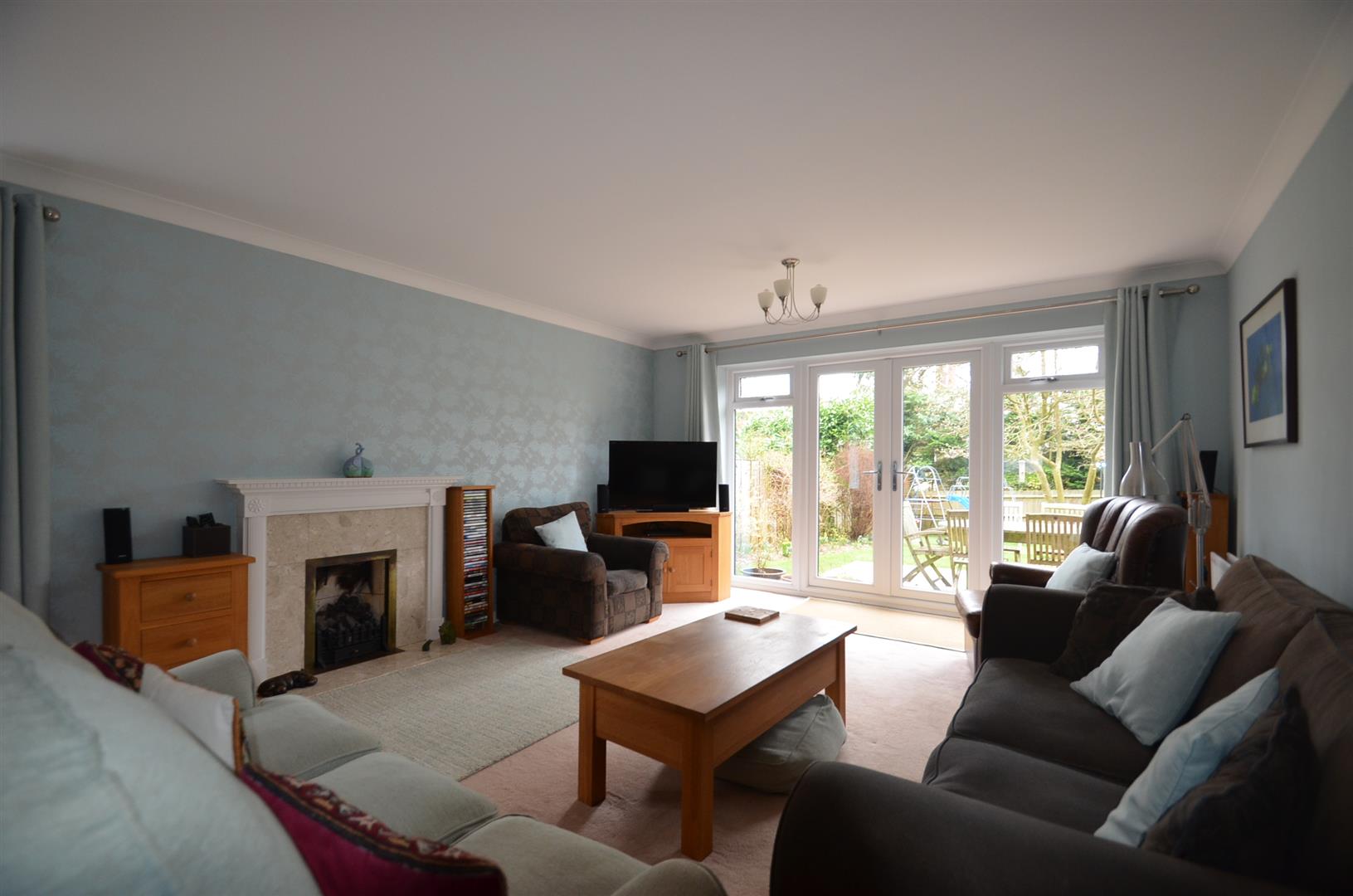 Dual aspect room with window to side and French doors to rear, two radiators, gas fire with wooden surround and marble hearth.