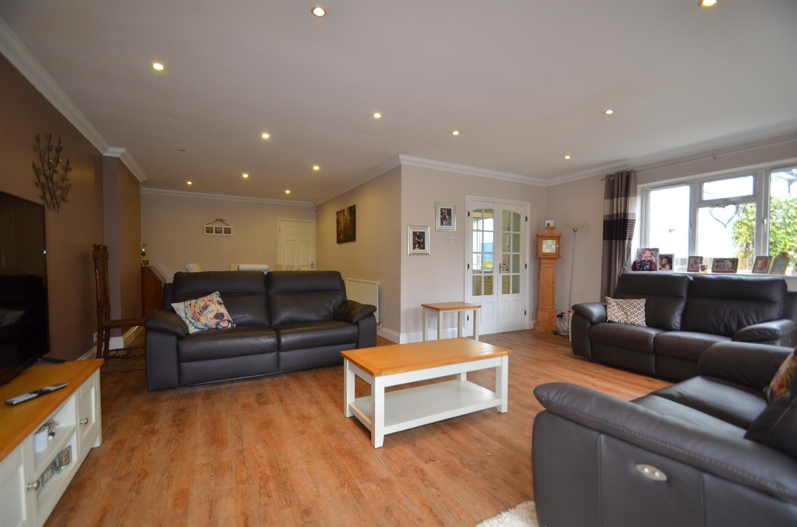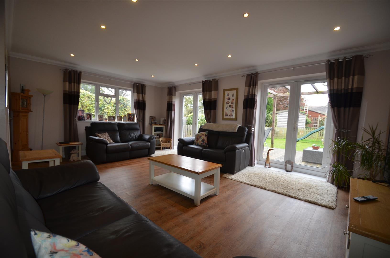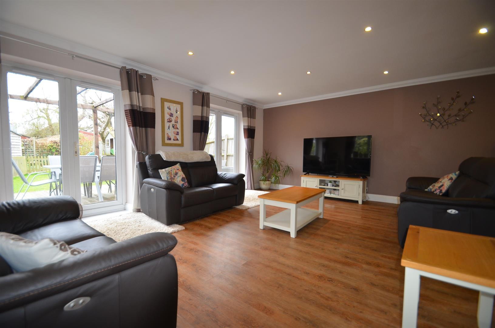 Two sets of double opening doors to rear garden, radiator, wood effect flooring, inset spotlights, window to side.