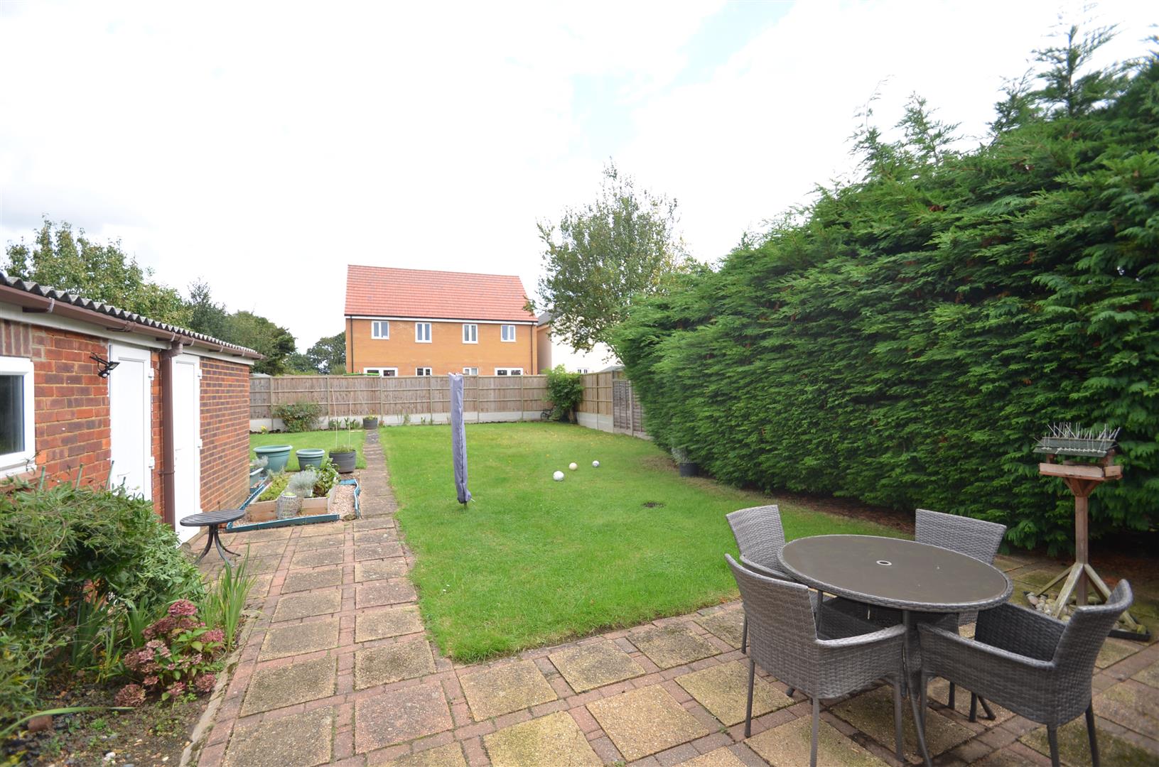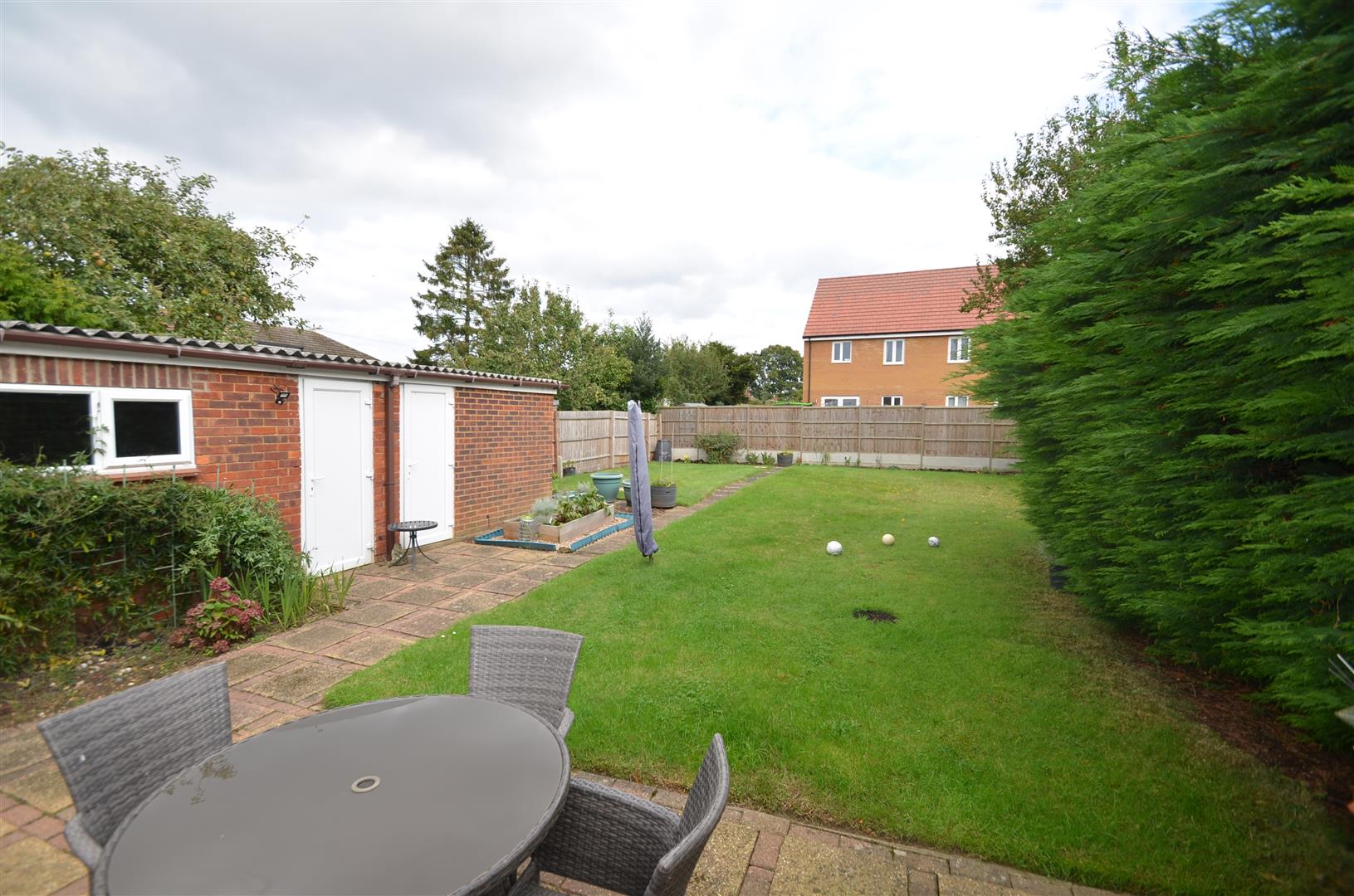 Large, fully enclosed garden approximately 75 ft in length, mainly laid to lawn, paved patio area, gated access to driveway.
