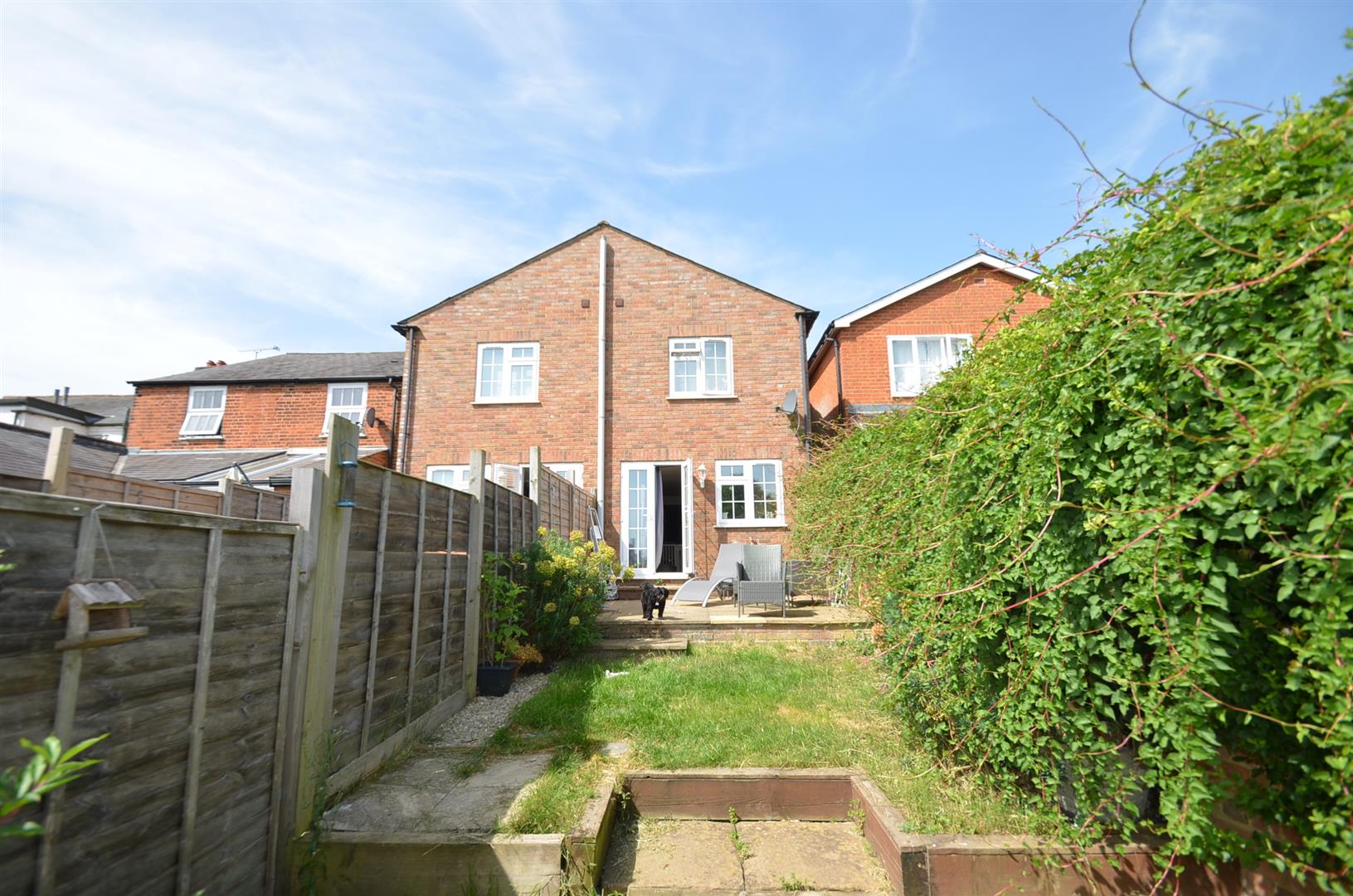 A good sized, fully enclosed garden with four stepped areas laid to either paving or lawn, gated access to front via footpath.