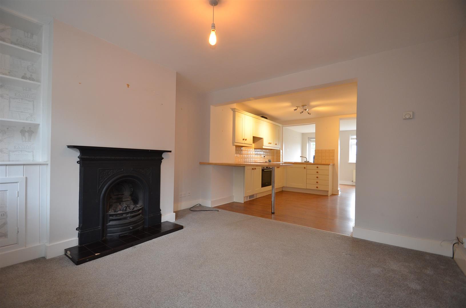 Window to front, entrance door, fireplace with tiled hearth, opening into:-
