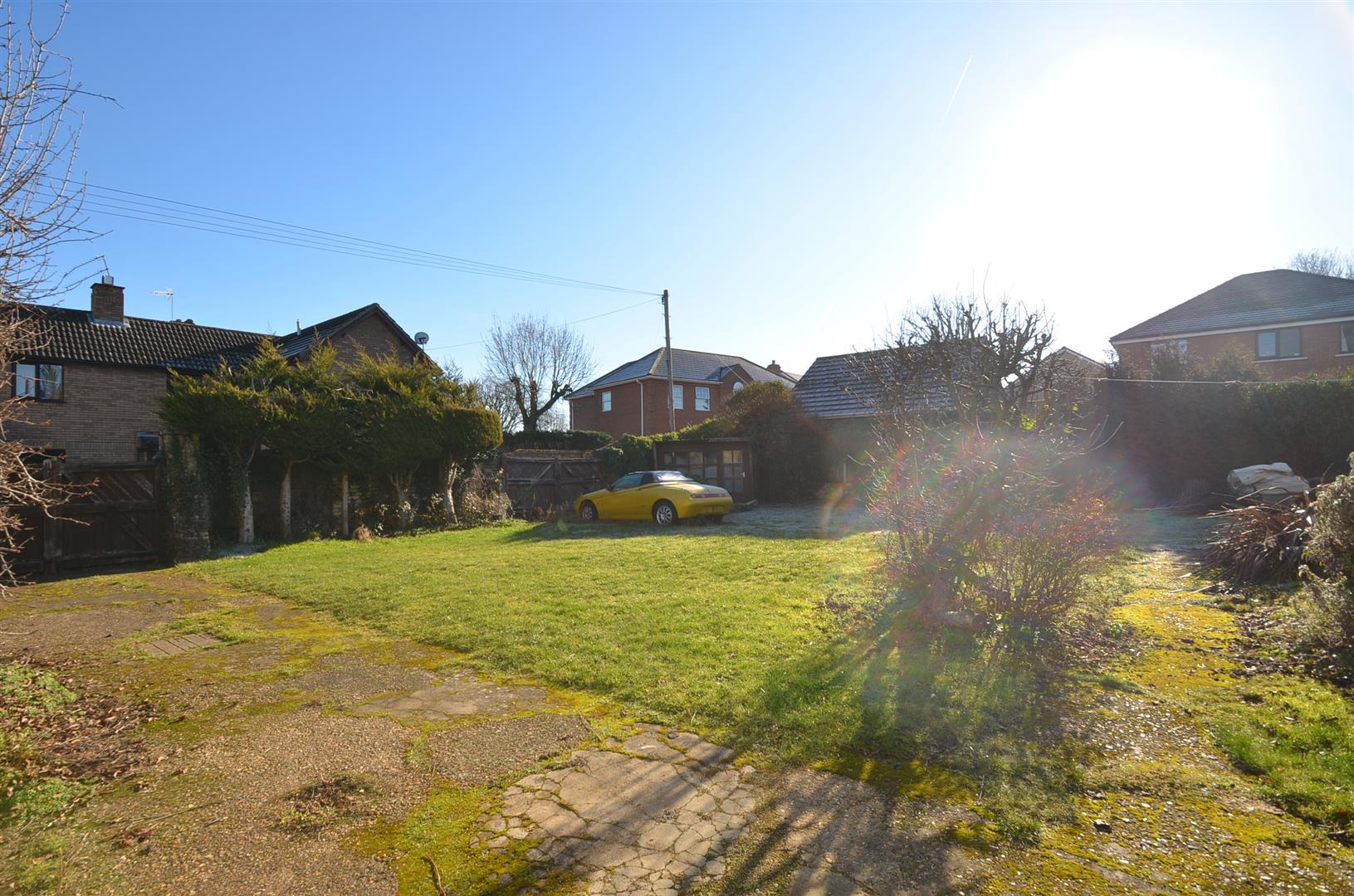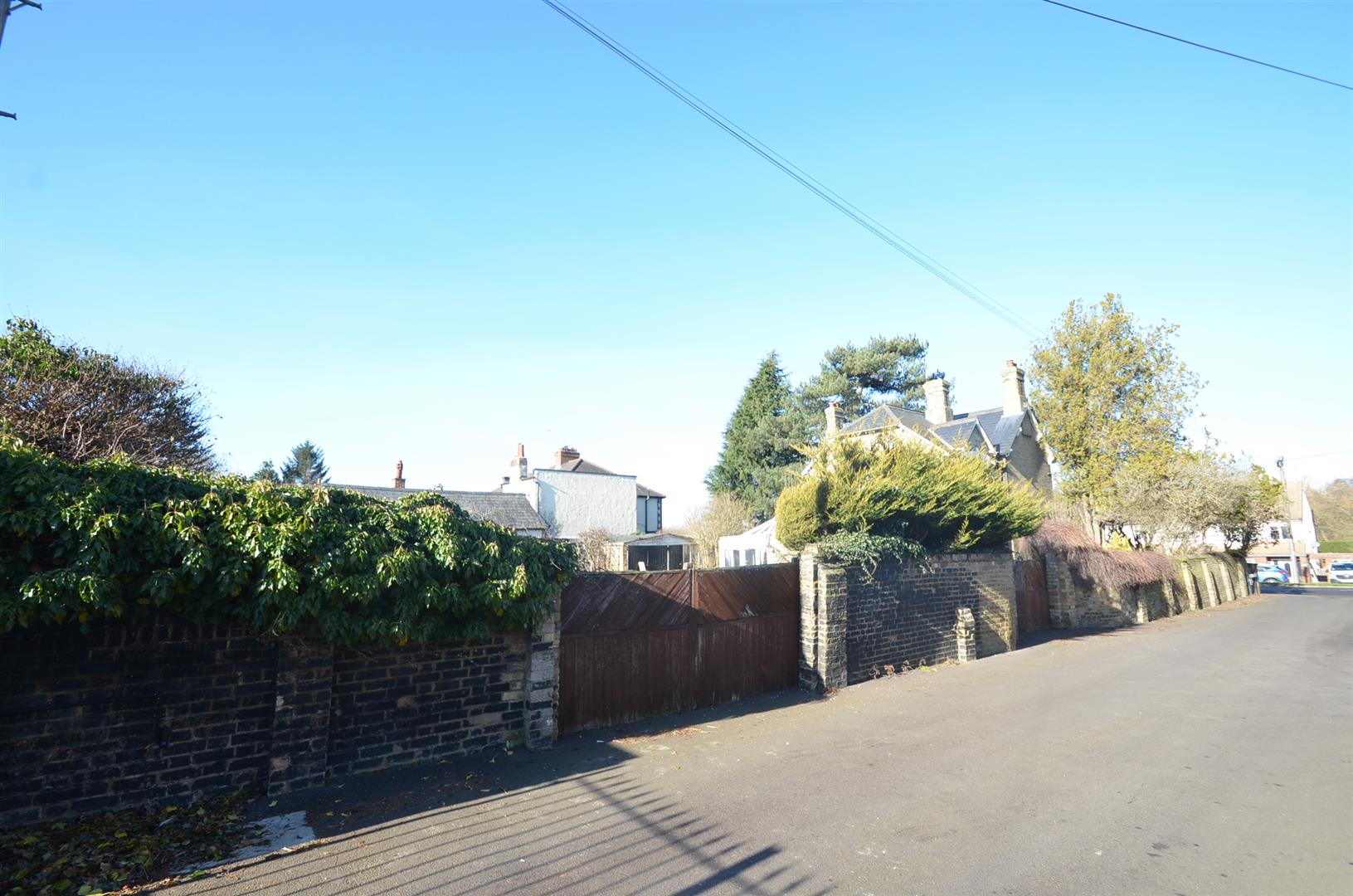 A large fully enclosed garden accessed via two double vehicular entrance gates, laid mainly to lawn with a variety of mature trees and shrubs, wrap around garden extending to both sides of property.