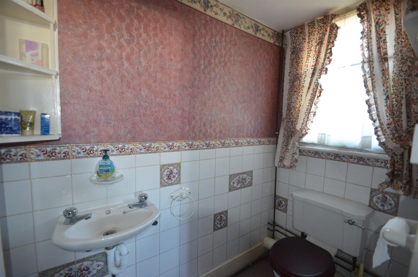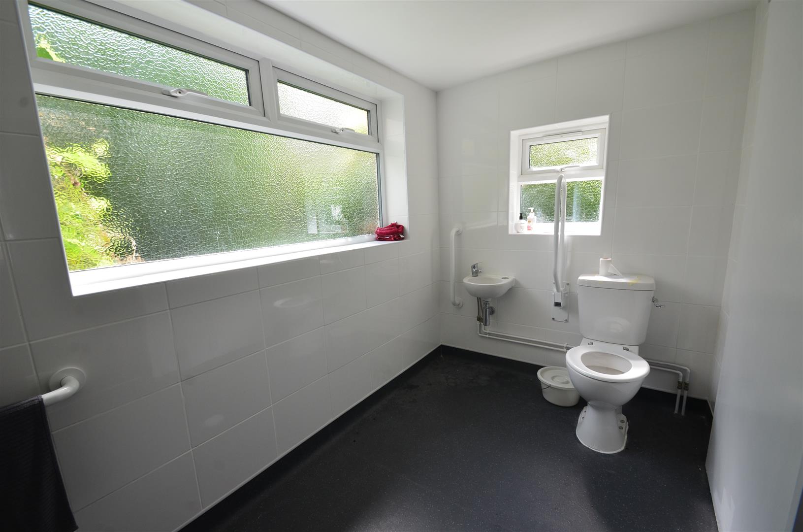 White suite comprising of low level w.c, wash hand basin, wall mounted shower, fully tiled walls, extractor fan, window to rear.