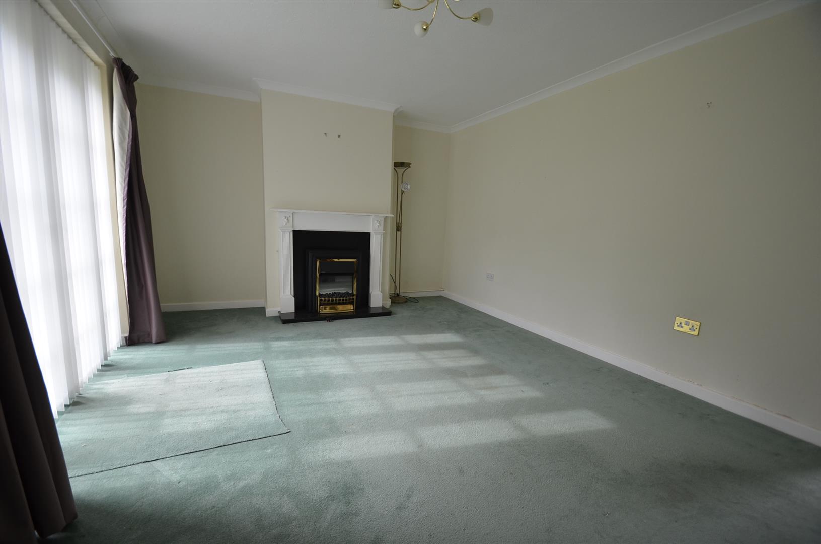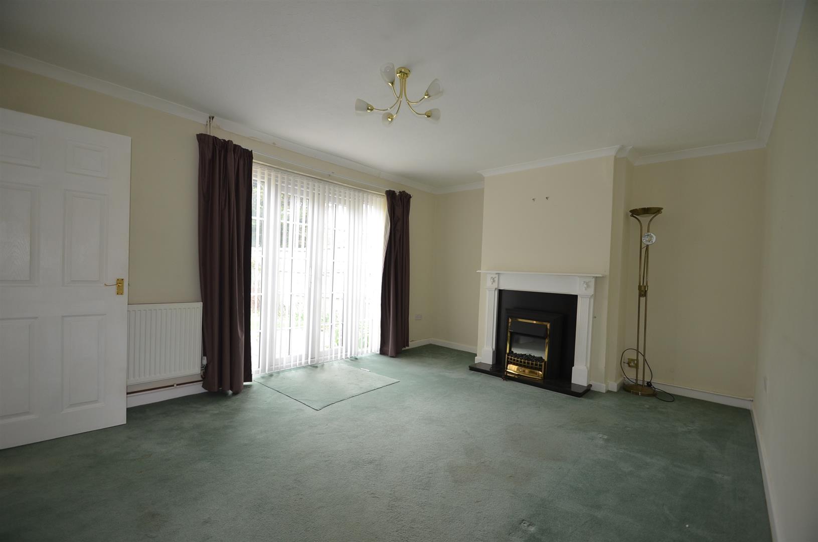Gas effect fire with wooden surround and marble hearth, radiator, French doors to garden.