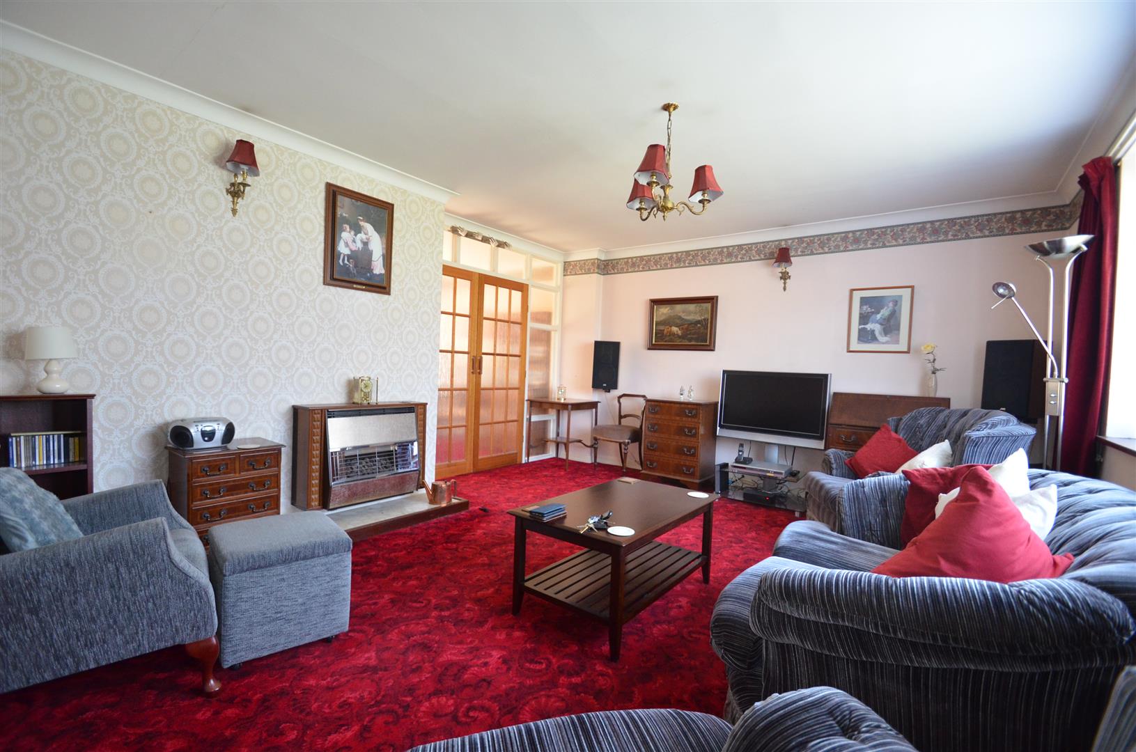 Window to front, radiator, gas fire, double opening door to:-
