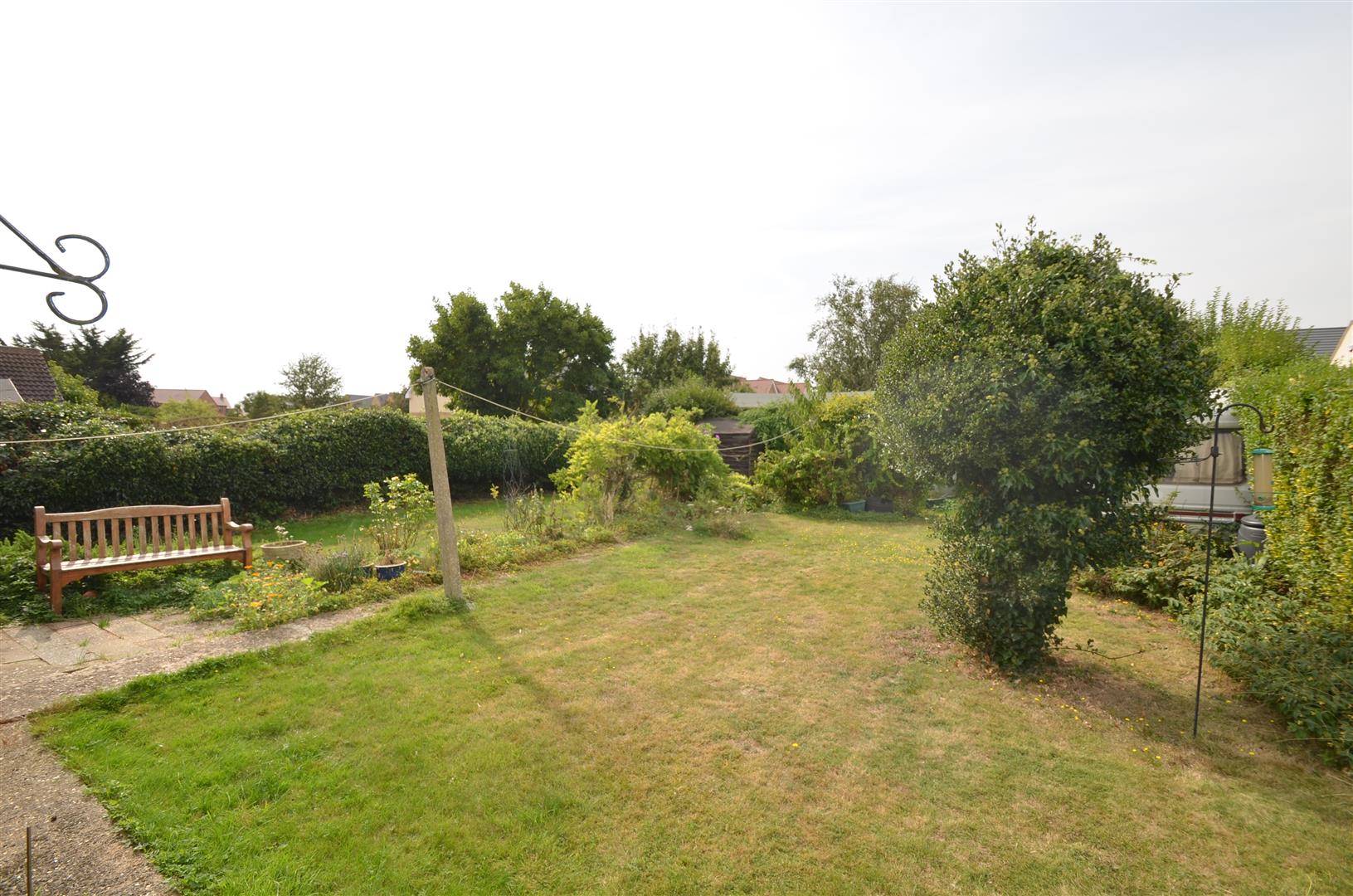 A large, fully enclosed garden laid mainly to lawn with a variety of mature trees and shrubs.