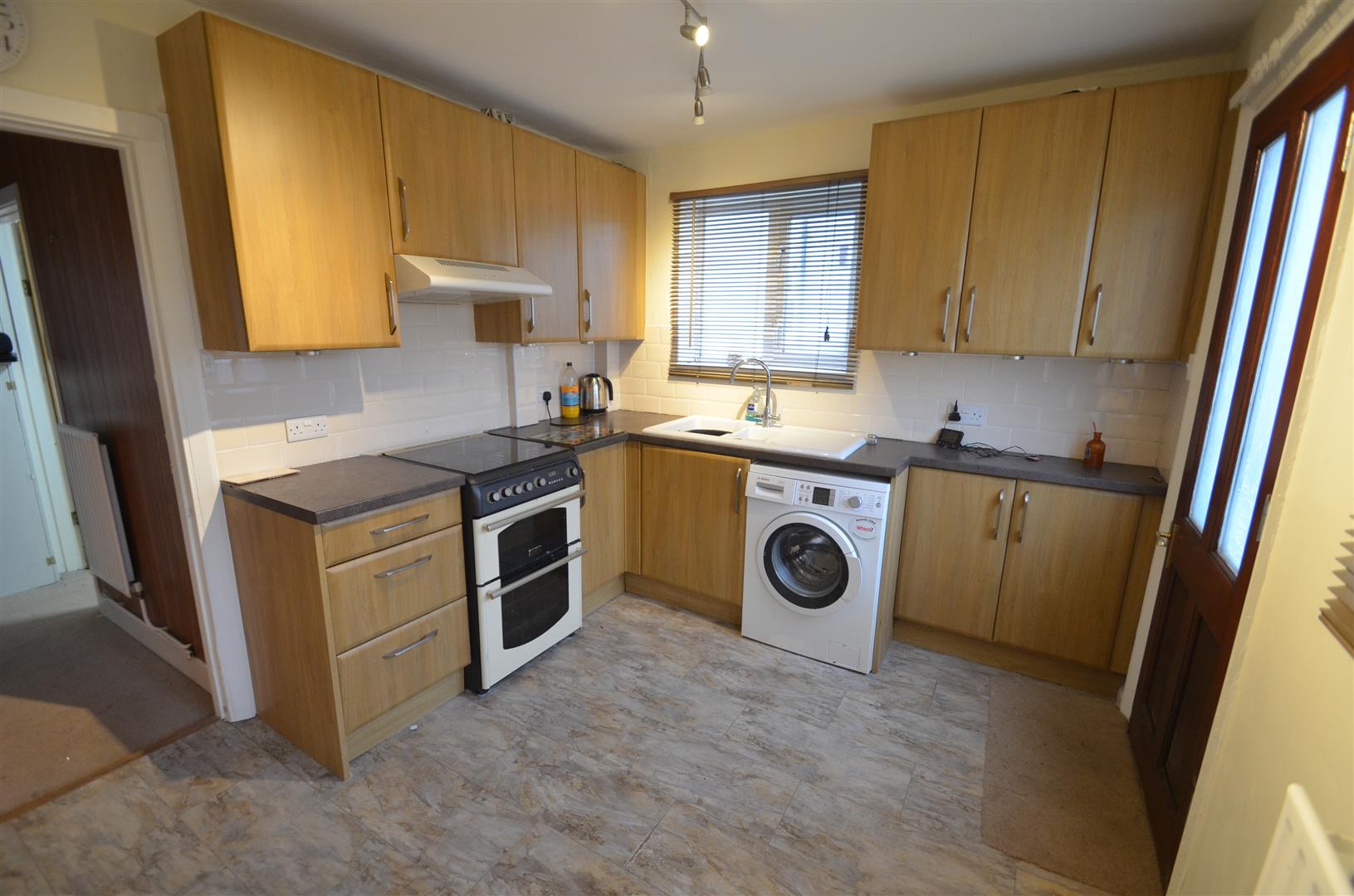 Fitted kitchen with a range of base and eye level units with roll top work surfaces, acrylic sink unit with mixer tap, tiled splash back, electric cooker point, two windows to rear and side, door to garden, fitted pantry, radiator.