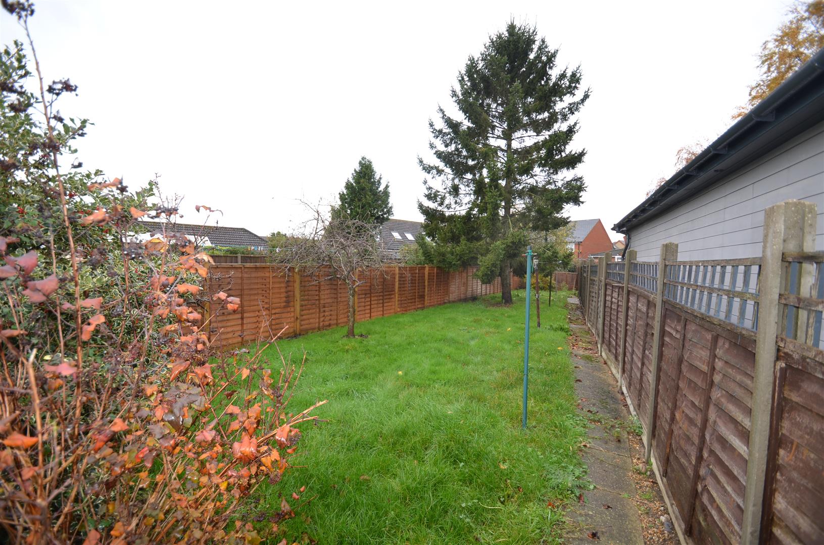 A large, fully enclosed rear garden with large, paved patio area rest laid mainly to lawn with a variety of trees and shrubs.