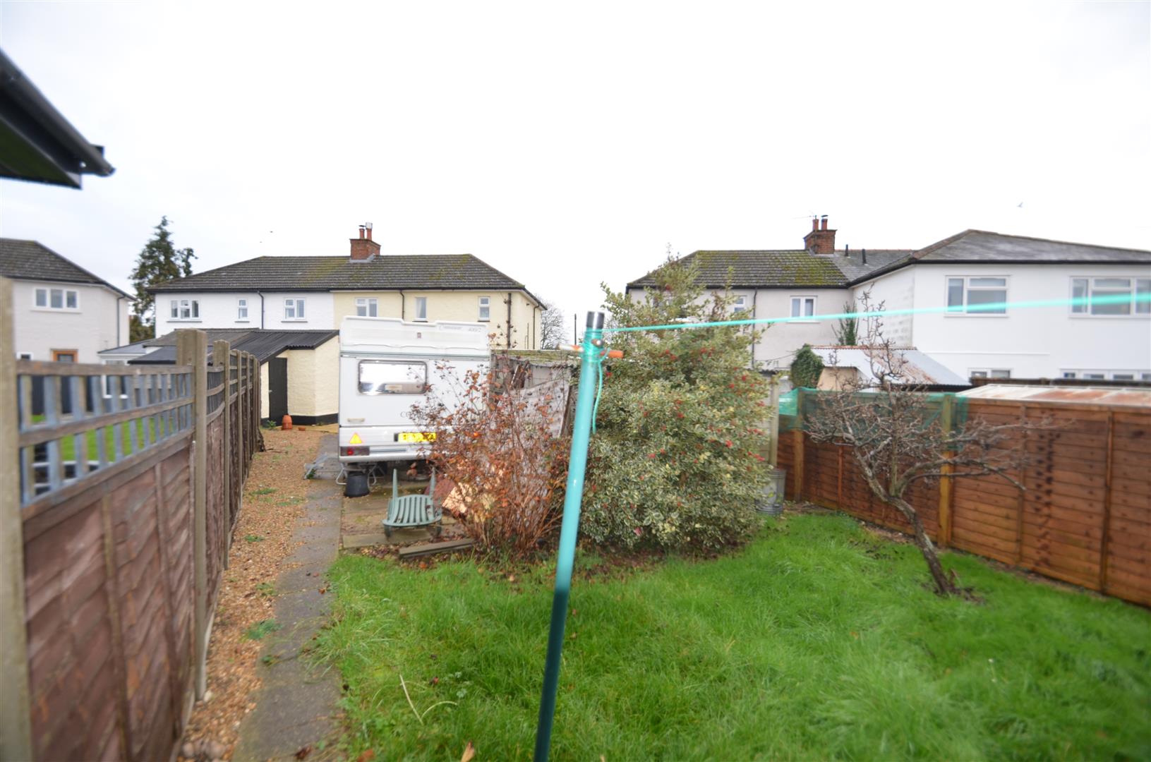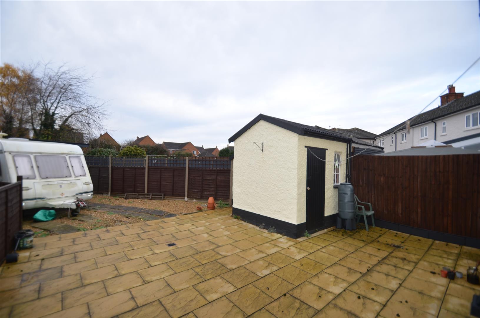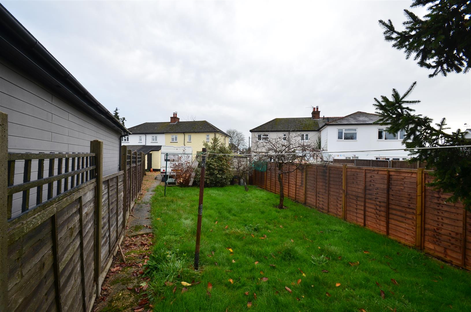 Gravelled driveway providing off road parking for two cars, concrete driveway leading to garage and rear garden, gated access to garden.