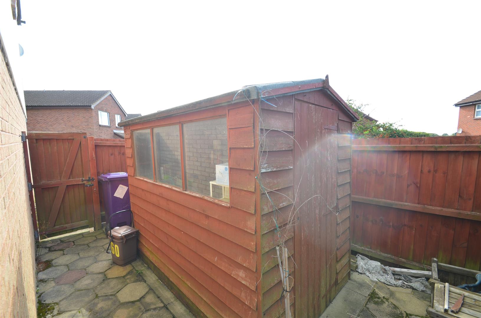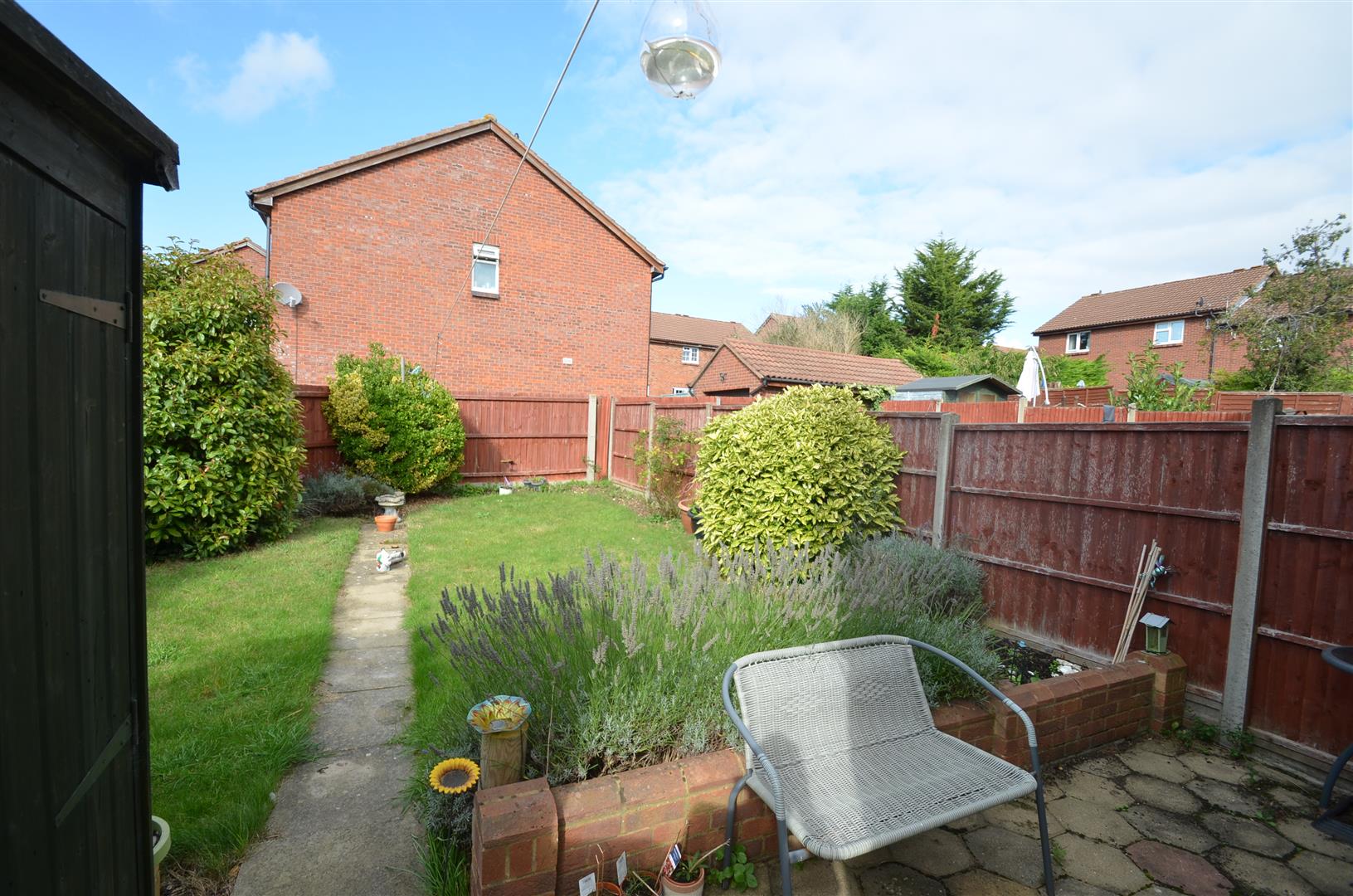 A good sized rear garden mainly laid to lawn with shrub boarders, fence boundary to all sides, patio area to both rear and side, two garden sheds, gated access to front.