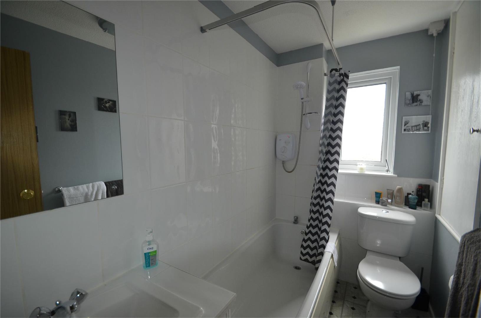 White suite comprising of panel enclosed bath with independent electric shower over, wash hand basin in vanity unit, low level WC, airing cupboard with shelving and hot water tank, heated towel rail, uPVC double glazed window to side.