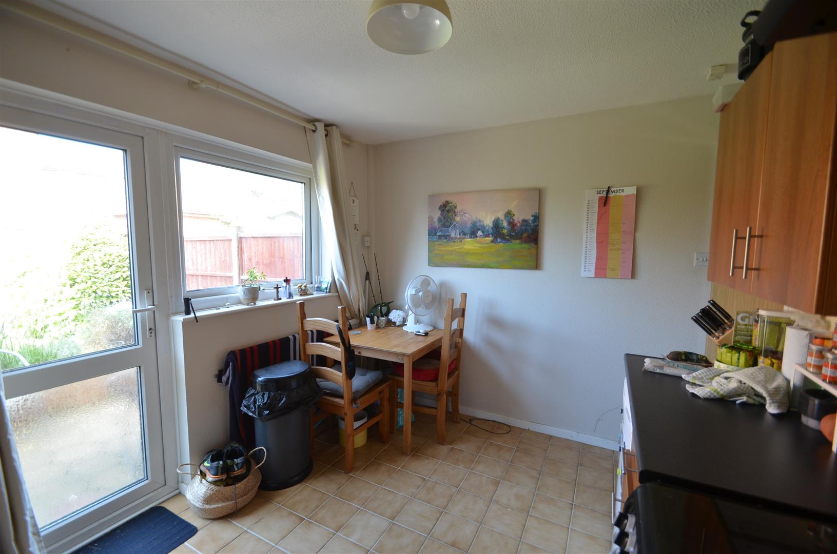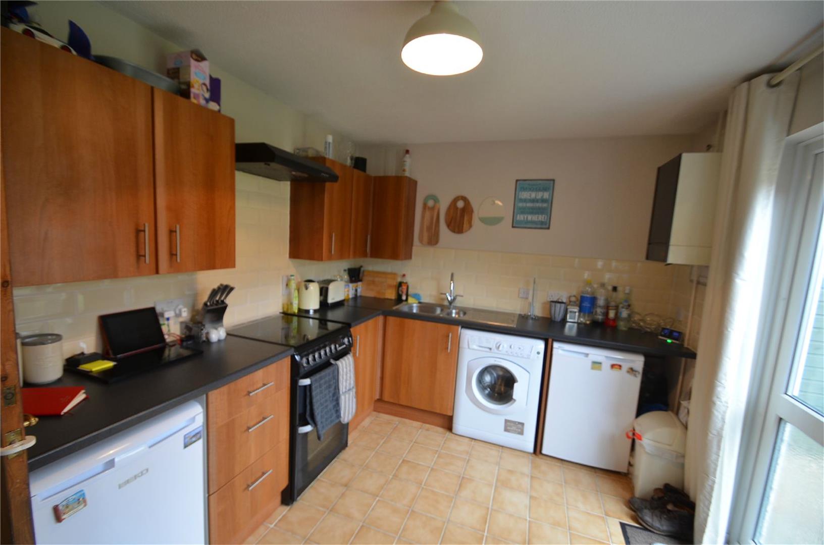 Fitted kitchen with a range of base and eye level units with roll top work surfaces, one and a half stainless steel sink unit with mixer tap, tiled splash back, tiled floor, wall mounted gas boiler, radiator, window to rear, door to garden.