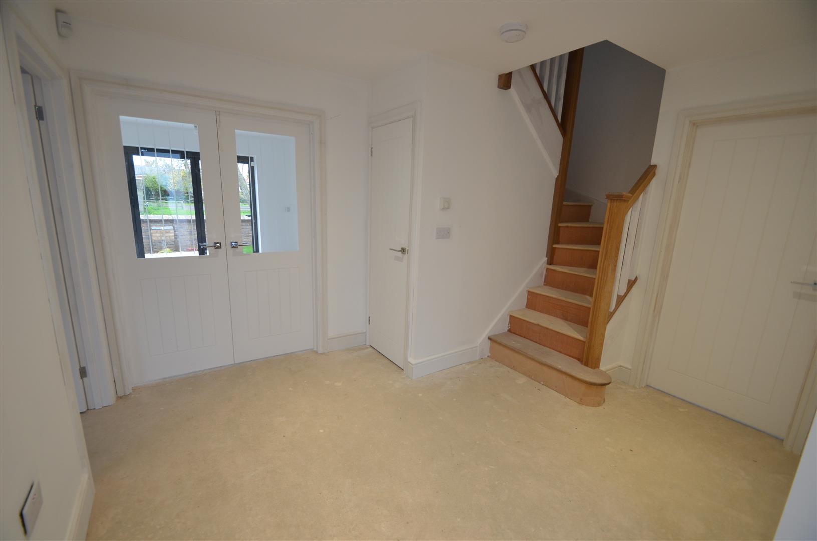 Entrance door, window to front, under stairs storage cupboard, radiator, stairs leading to first floor.