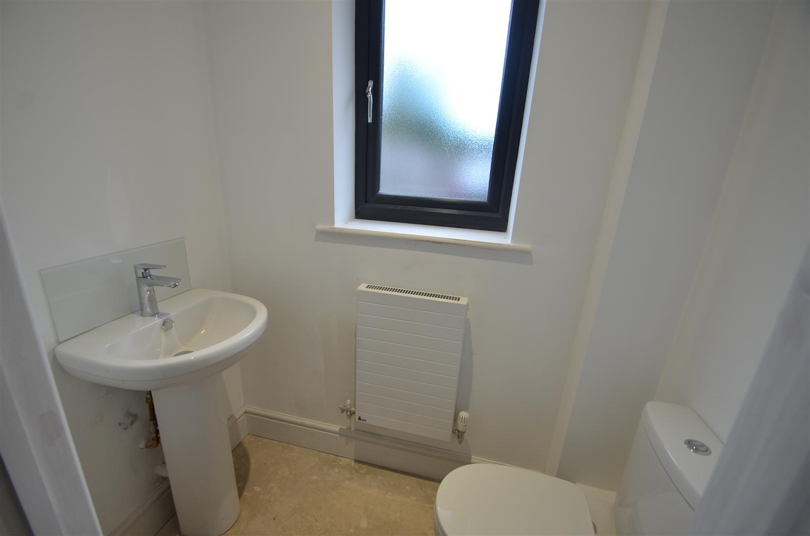 White suite comprising of low level w.c, wash hand basin, window to front.