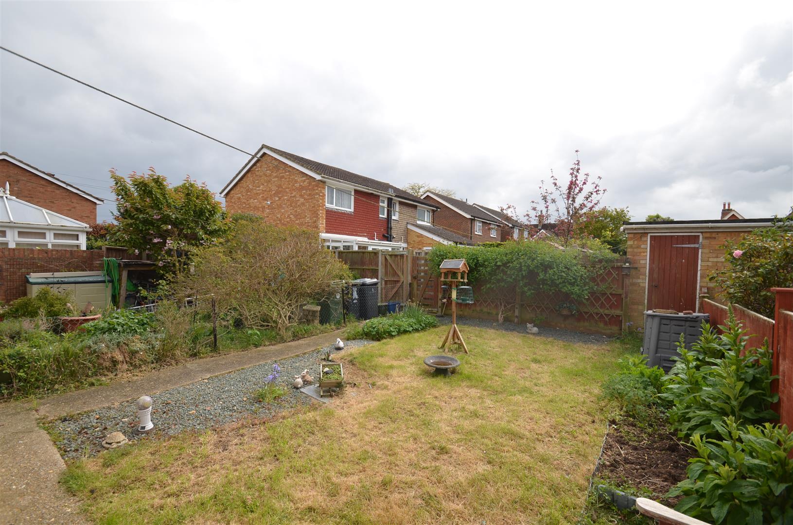 Path leading to rear gate, rest laid mainly to lawn, personal door to garage.