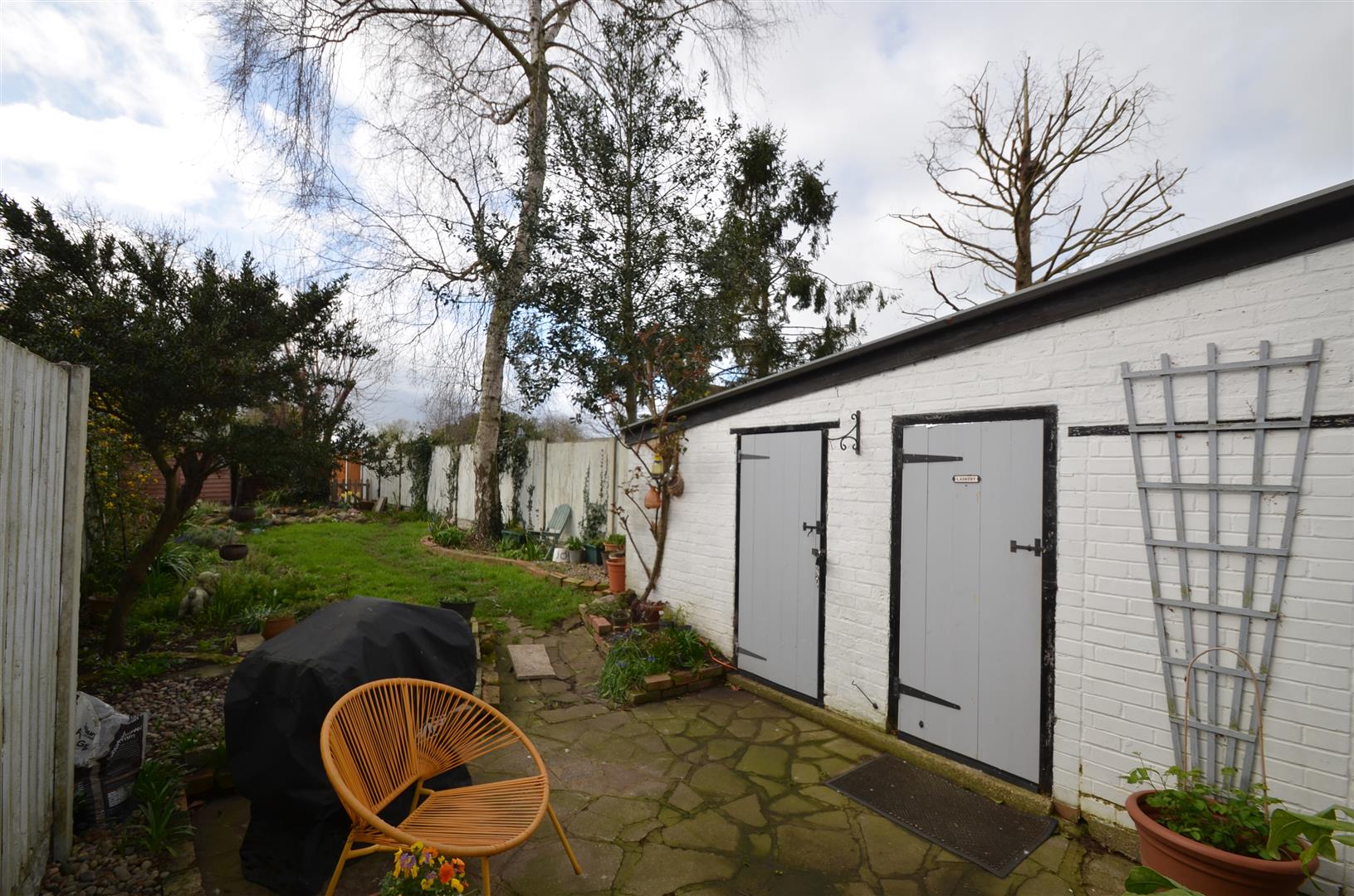 A lovely, sized rear garden approximately 120ft in length, south west facing, mainly laid to lawn with paved patio area and path, garden pond, garden shed and large timber outbuilding to rear of garden.