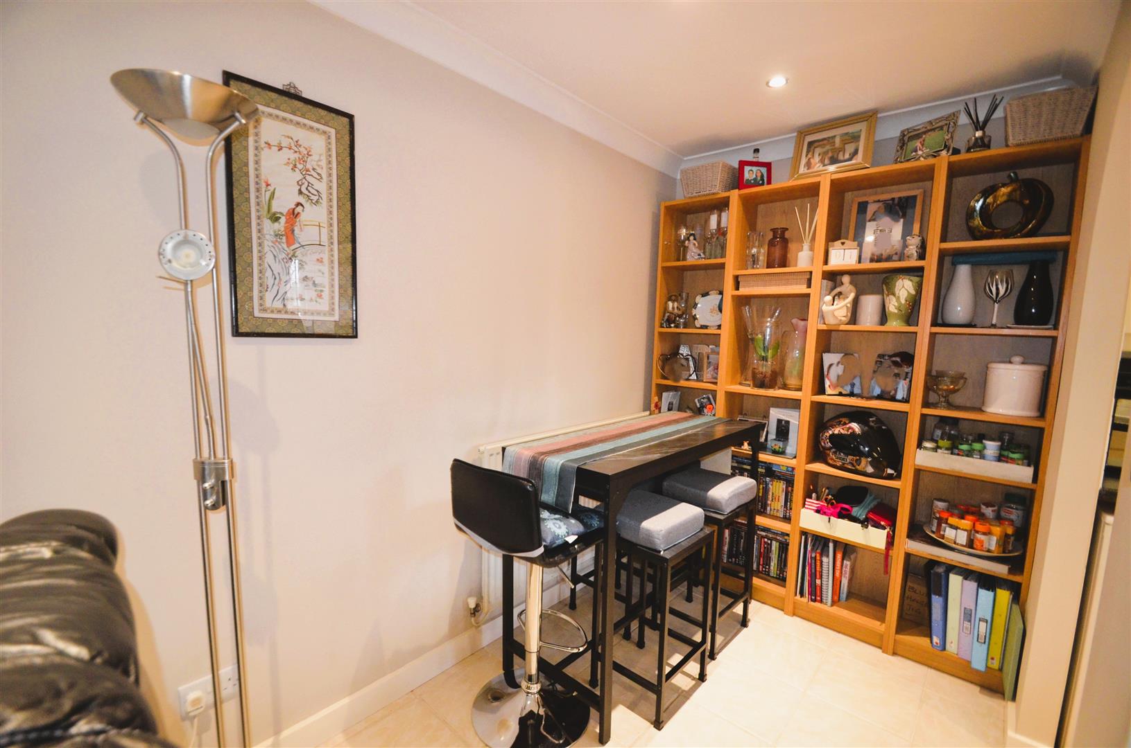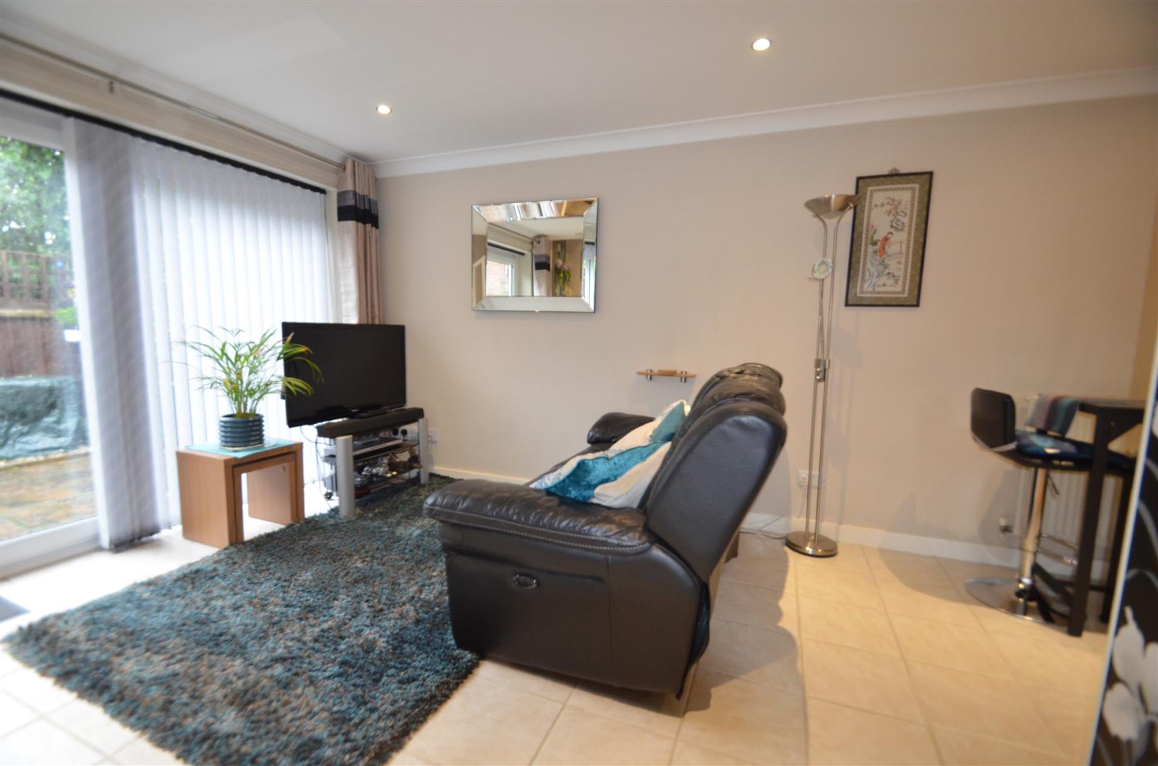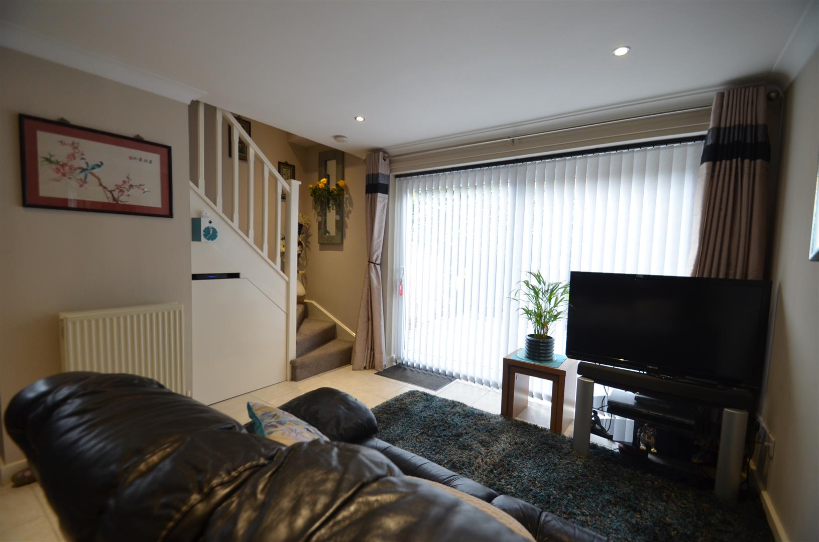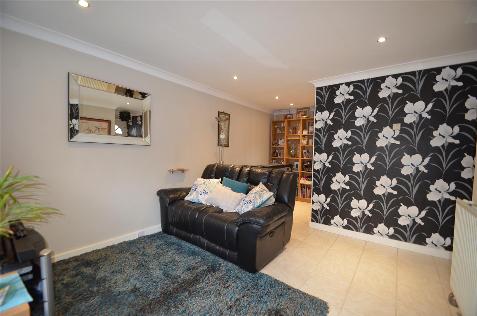 Entrance door, large storage cupboard, three radiators, tiled floor, sliding patio doors to garden, stairs leading to first floor, under stairs storage cupboard, inset spotlights.