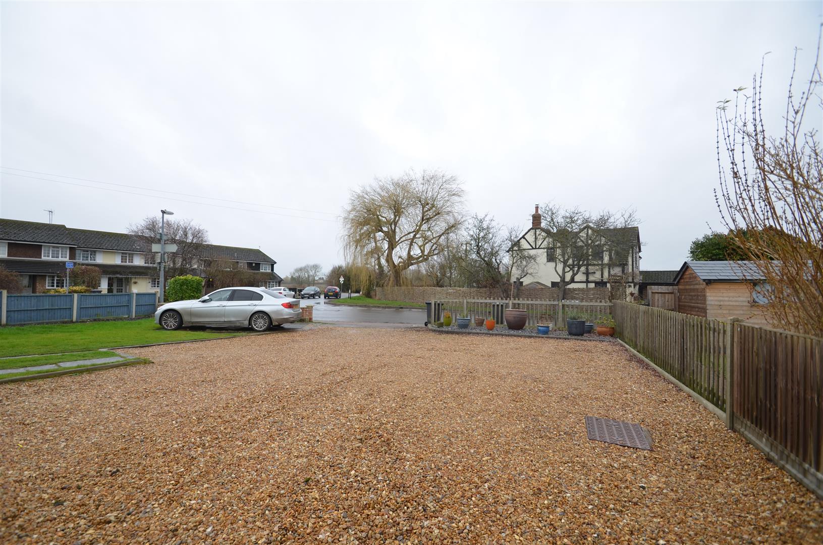 A large gravelled driveway providing off road parking for several cars, gated access to rear garden.