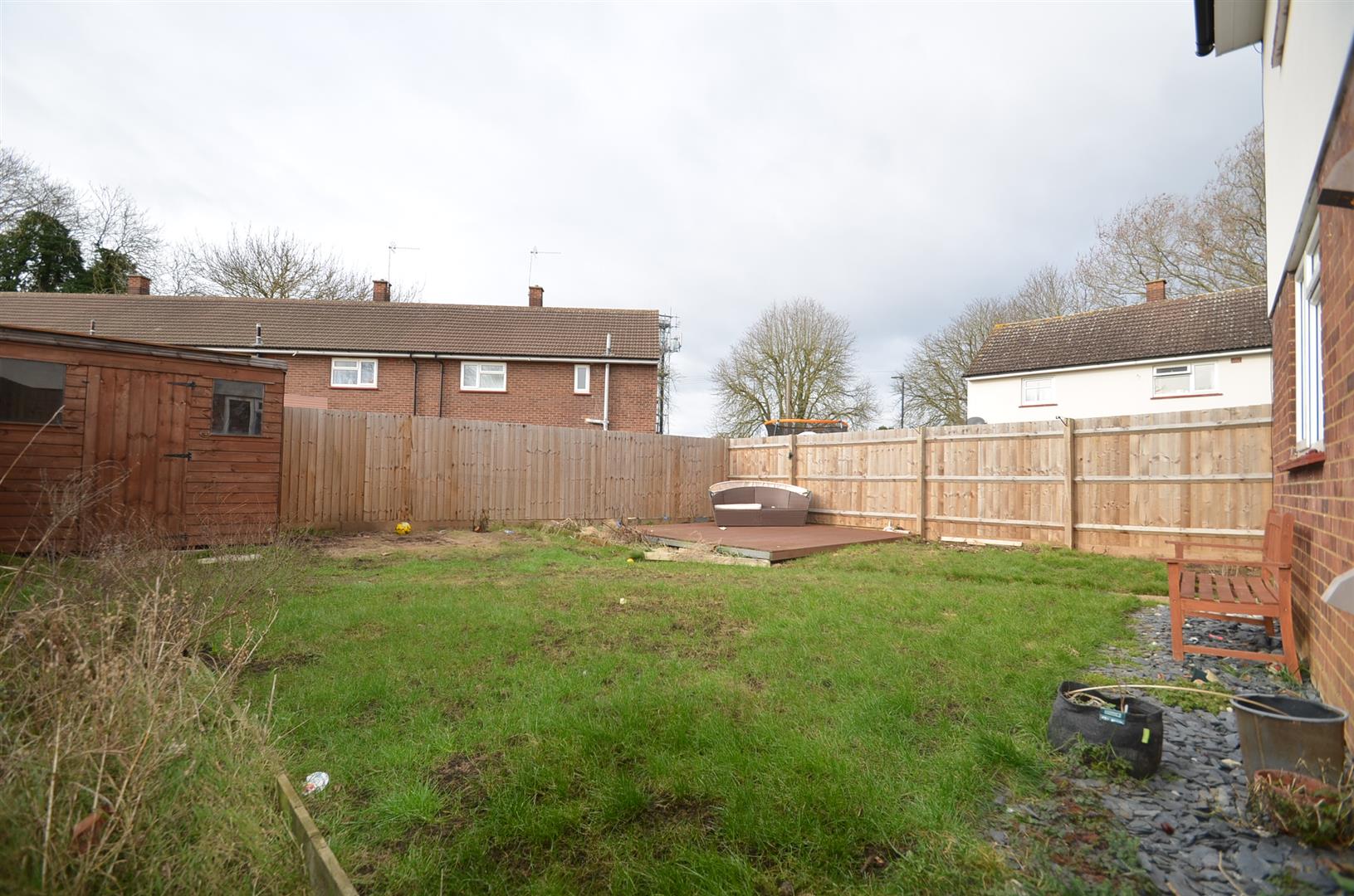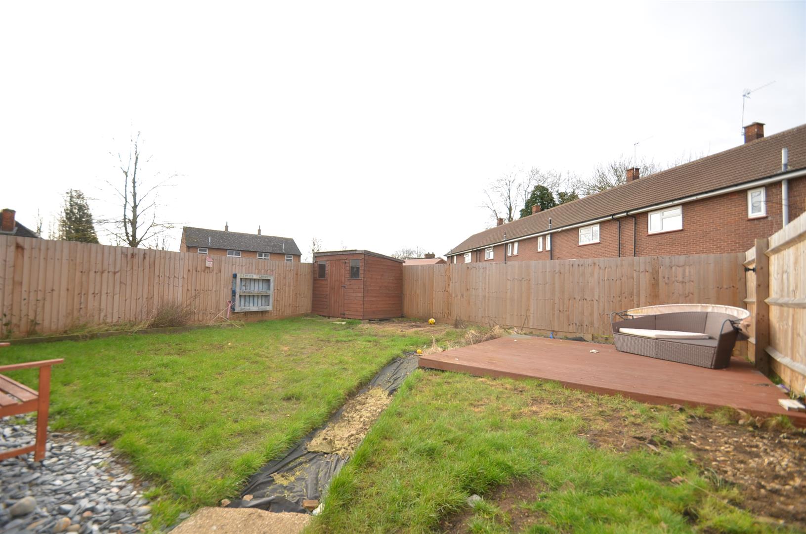A fully enclosed garden laid mainly to lawn, with decked area, garden shed.