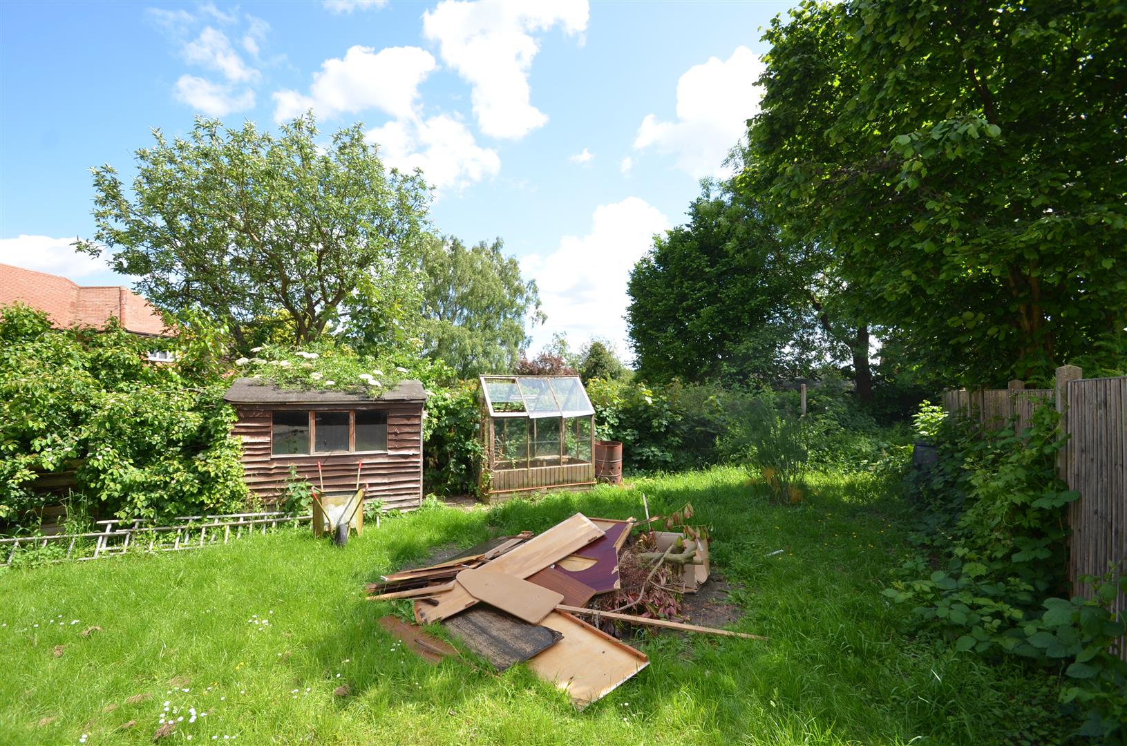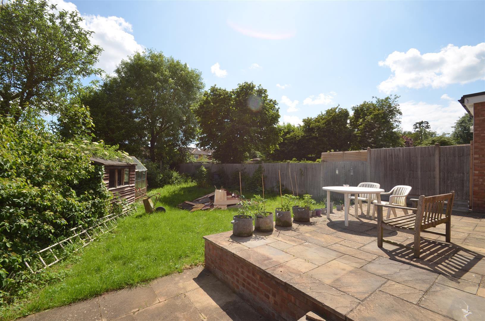 A good sized fully enclosed garden laid mainly to lawn, large paved patio area, variety of mature trees and shrubs, gated access to front.