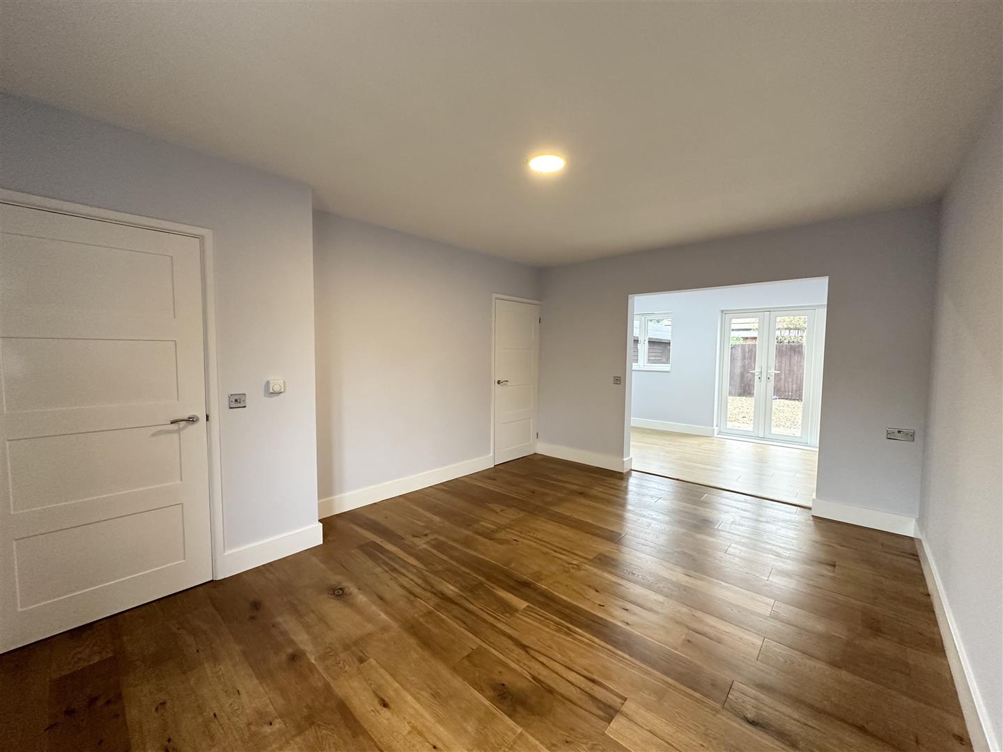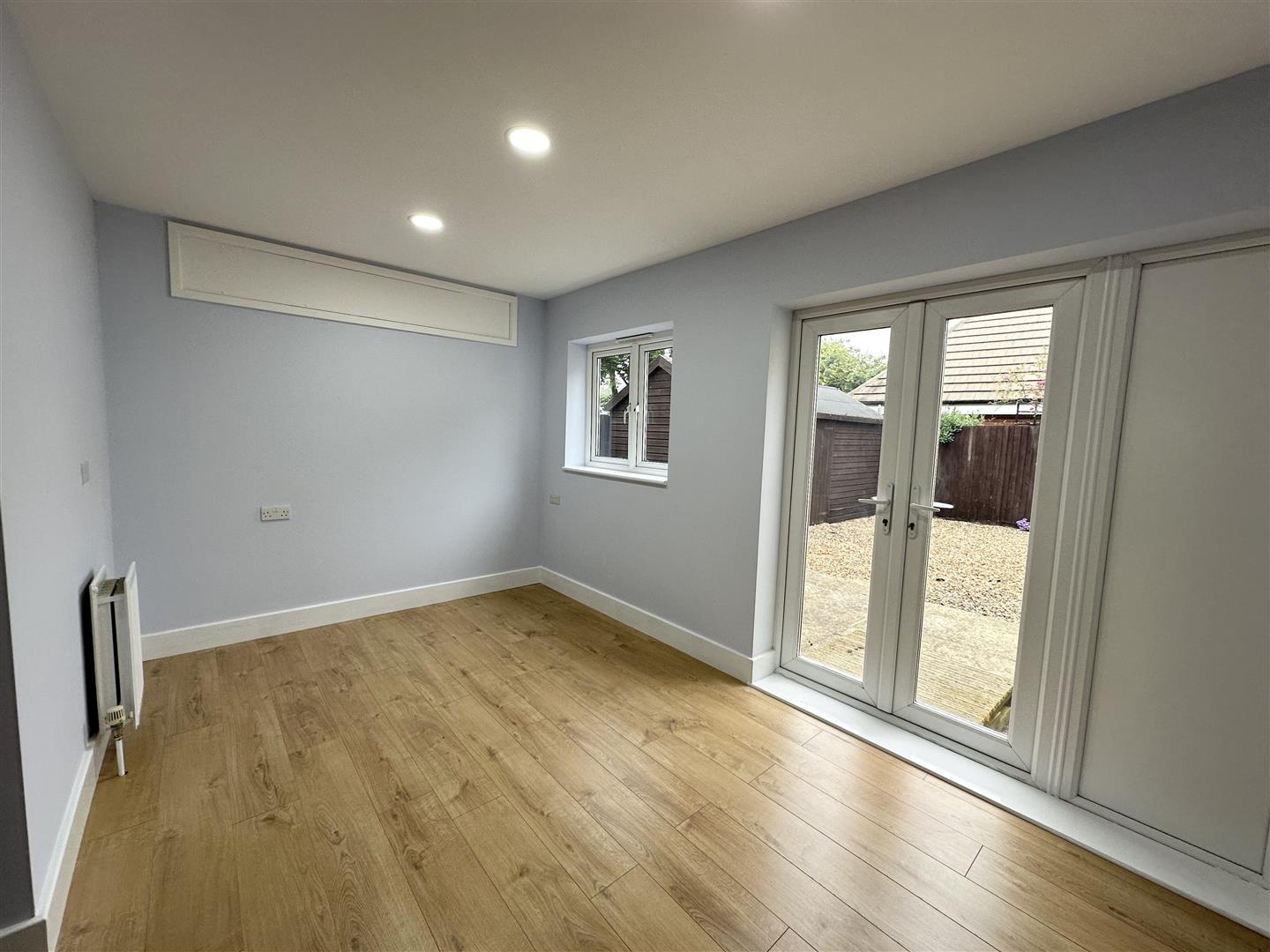 uPVC window to rear, double doors leading out to the patio area, wooden flooring, spotlights, radiator.