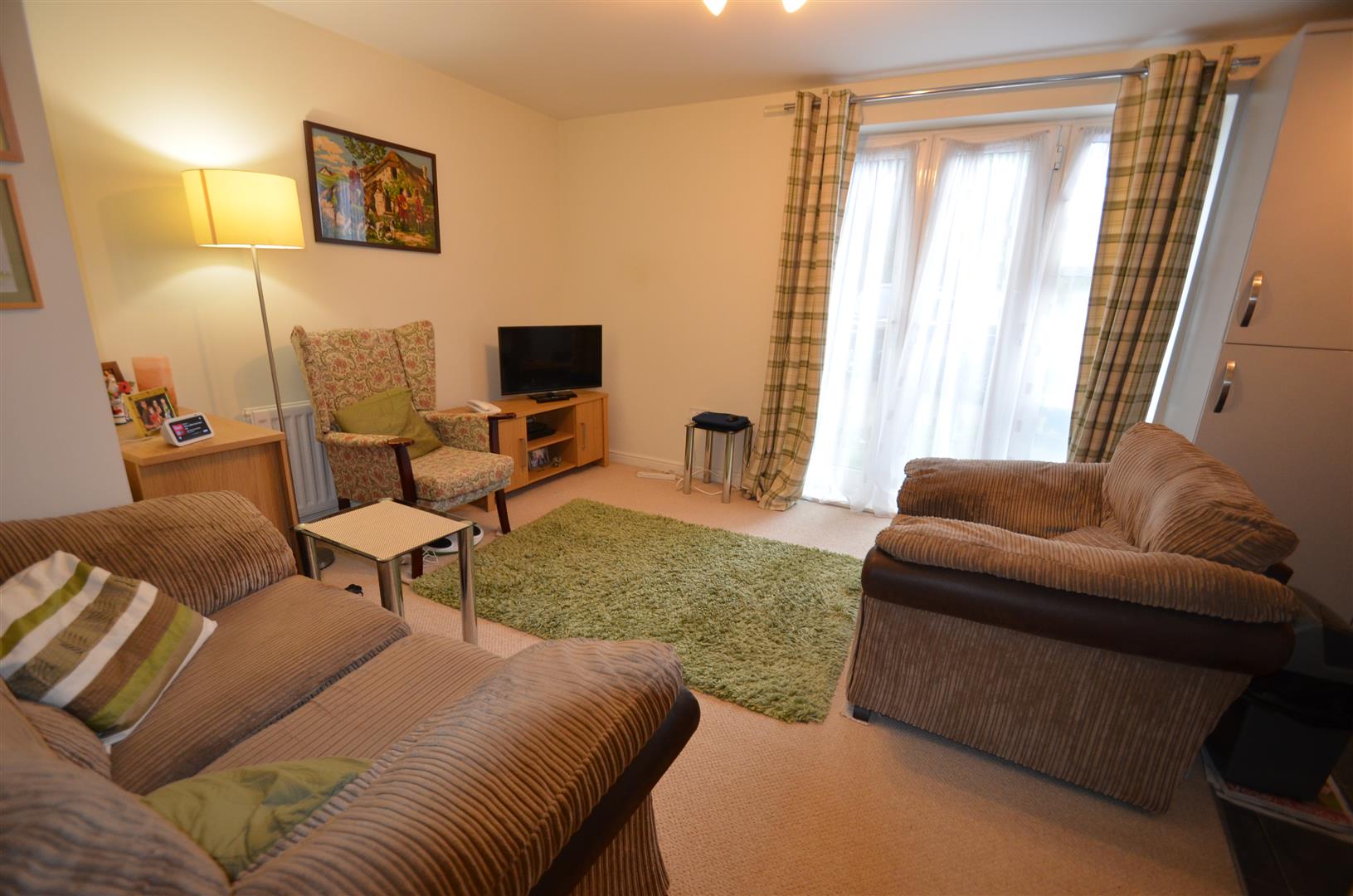 Double glazed doors opening onto Juliet balcony, uPVC double glazed window to side, opening into:-
