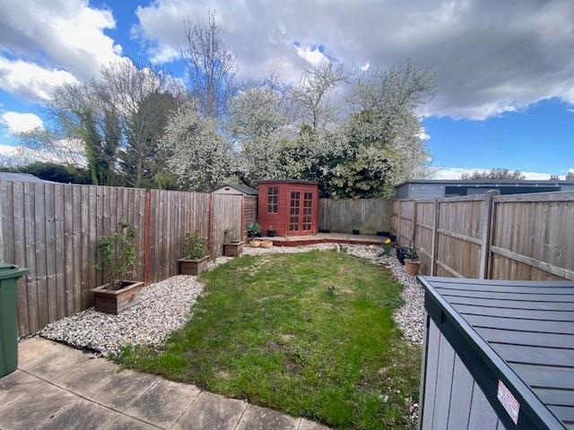 Fully enclosed rear garden with gated access to front, paved patio area rest laid to lawn with flower bed borders and shrubs, small garden pond, summer house.