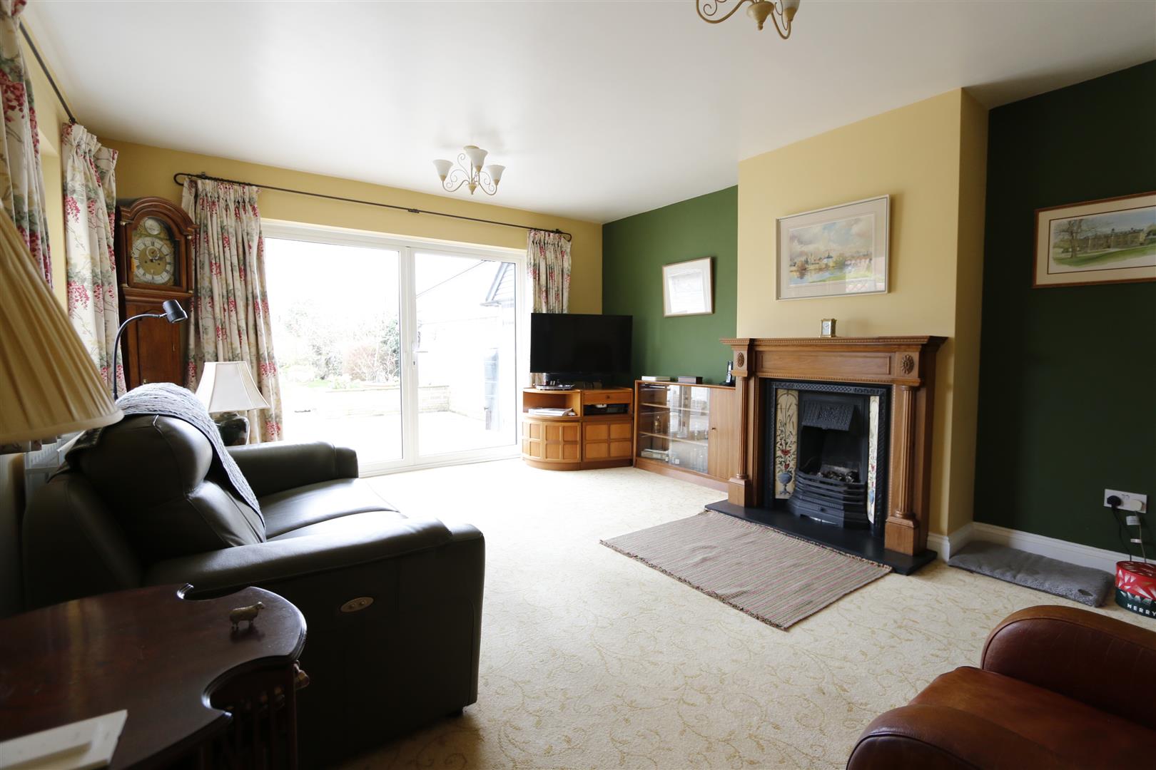 uPVC double glazed window to side, French doors to garden, fireplace with inset Calor gas fire with wooden surround, two radiators.