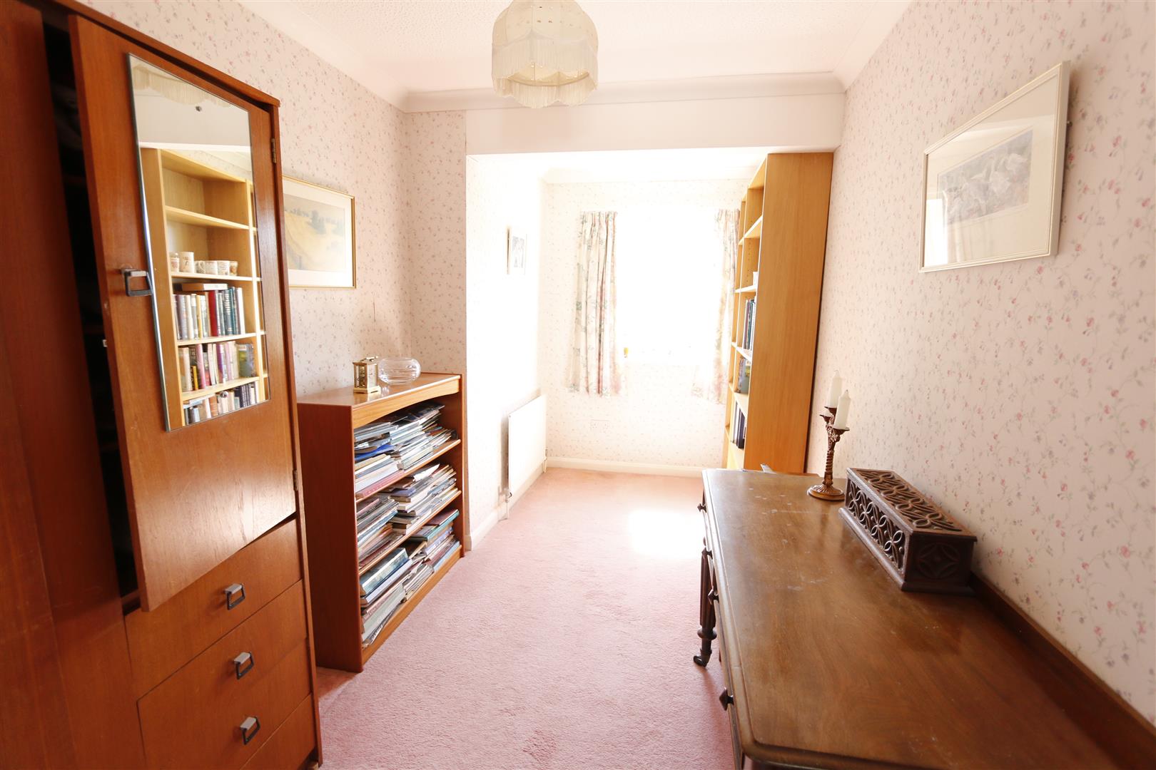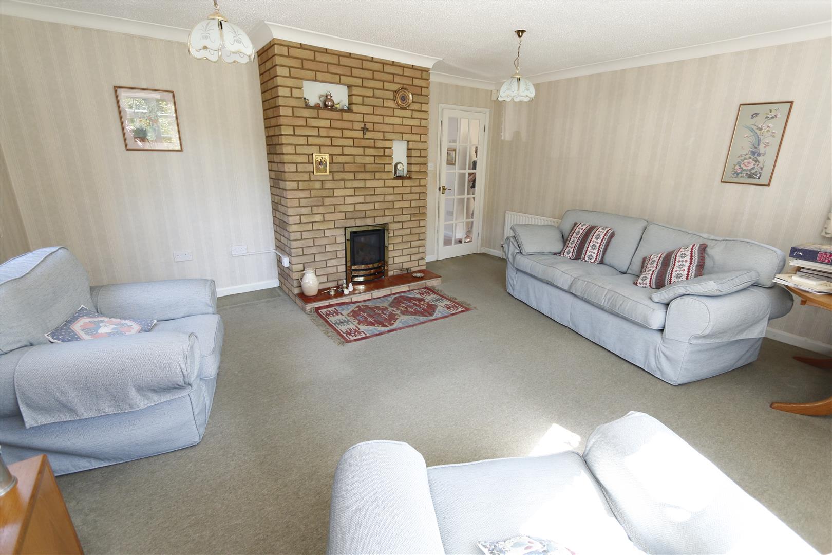 Dual aspect room with windows to side and rear, two radiators, gas fire with brick surround.
