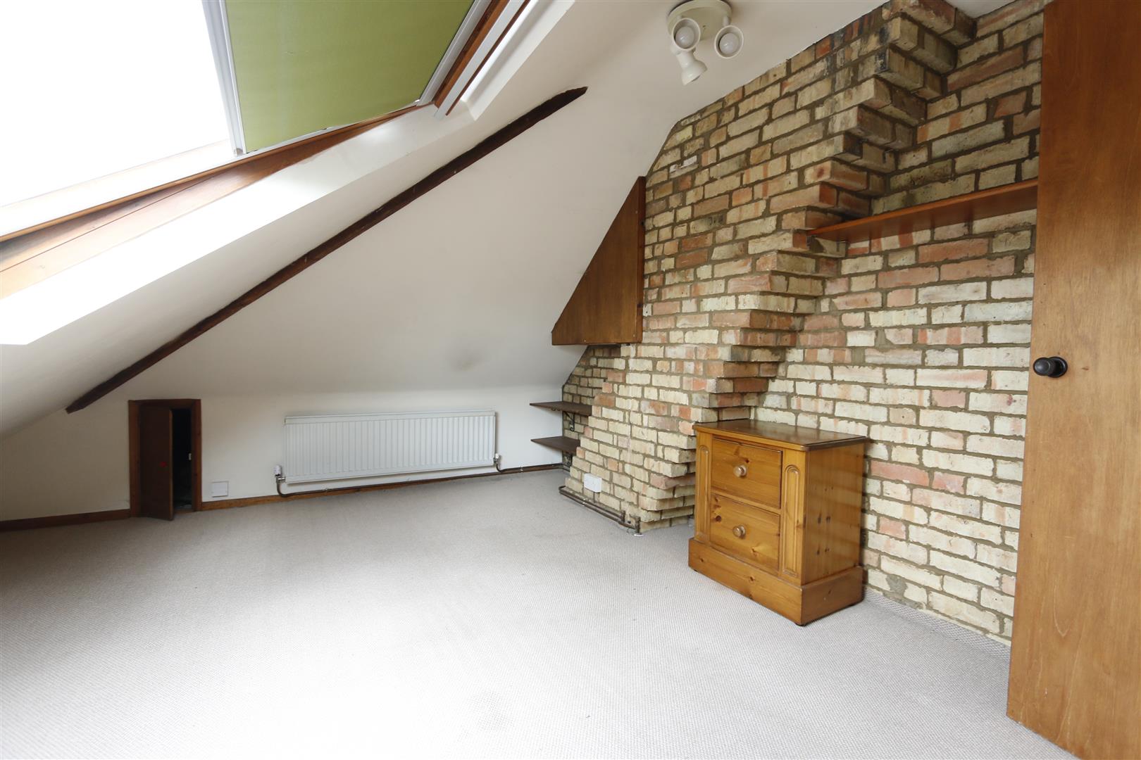 Stairs leading to second floor, storage cupboard, Velux window to rear.