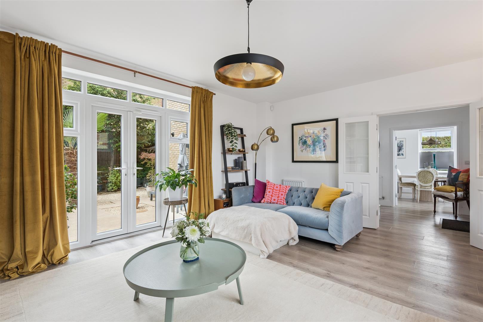 A lovely, light and airy dual aspect room with windows to front and side, radiator, double sliding pocket doors to kitchen/breakfast room.